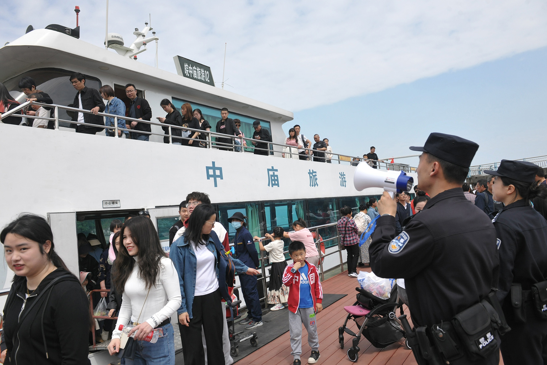 5月1日,安徽省巢湖市中廟旅游風(fēng)景區(qū)姥山島迎來游客高峰。巢湖市公安局開啟“旅游警務(wù)”模式,在景區(qū)內(nèi)開展矛盾化解、游客分流、提醒引導(dǎo)等工作。