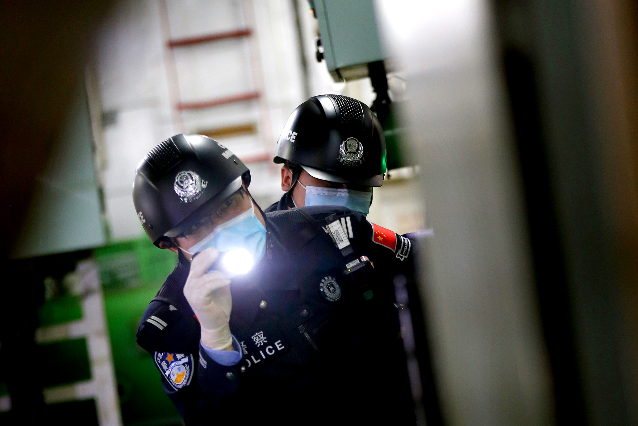 5月2日,江蘇南京港出入境邊防檢查站執(zhí)勤民警正在檢查外輪貨倉。