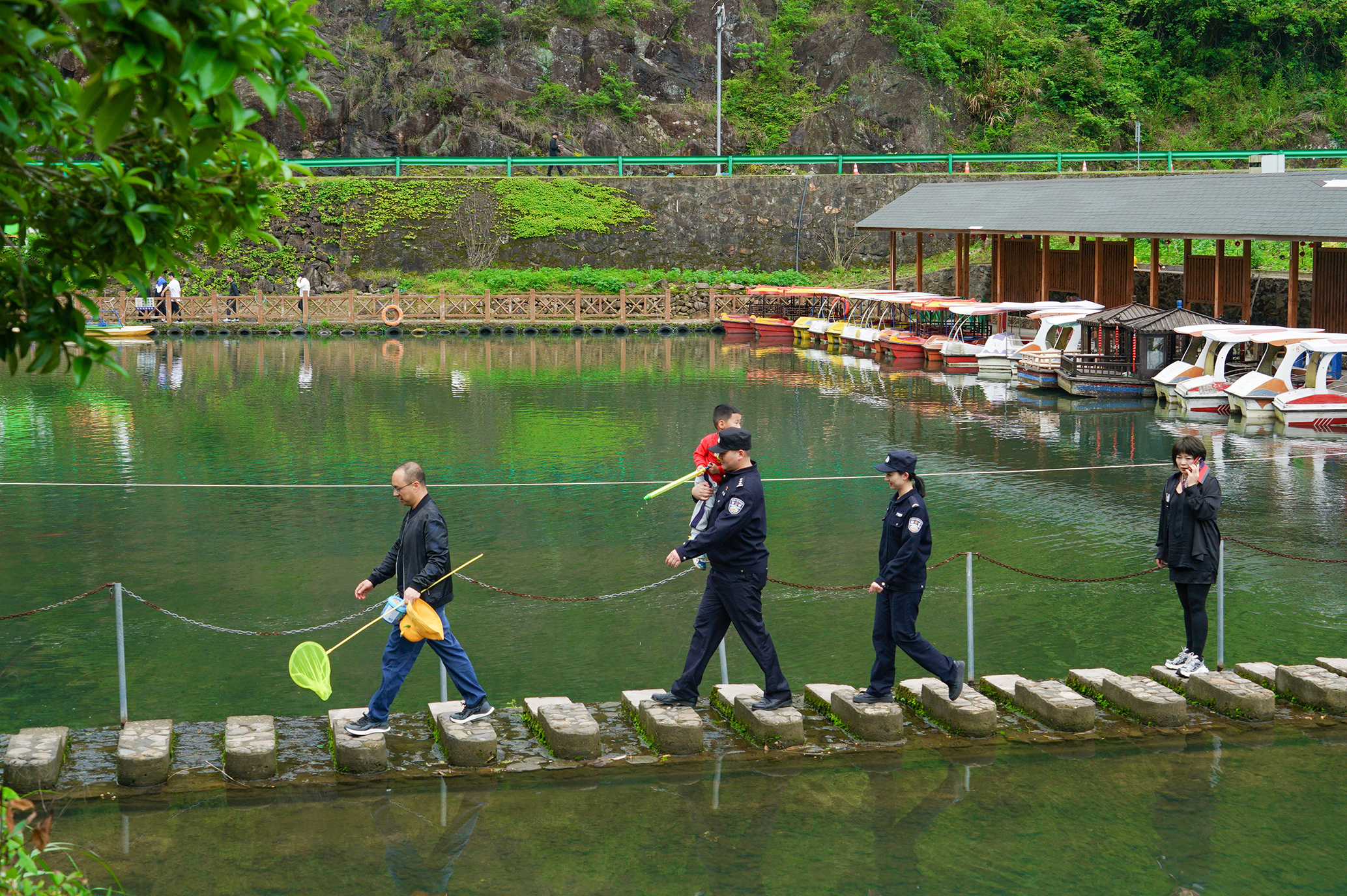 5月5日,浙江省臺州市三門縣公安局橫渡派出所民警在景區(qū)開展便民服務(wù)。