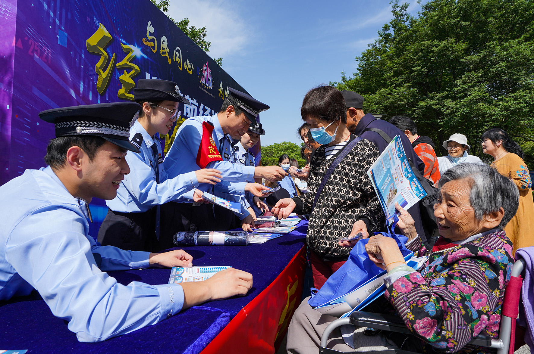 圖為5月13日,民警面對面向老年群體傳授防騙知識和自救技巧。