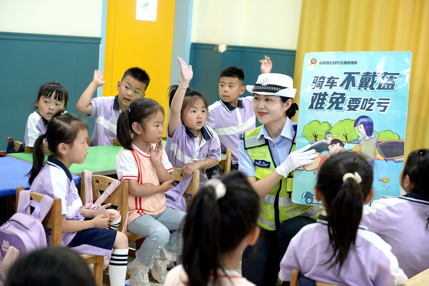 5月27日,山東省棗莊市公安局山亭分局交警大隊(duì)走進(jìn)轄區(qū)海子社區(qū)陽(yáng)光幼兒園,以寓教于樂(lè)的方式,為小朋友們上了一堂生動(dòng)有趣的交通安全教育課。