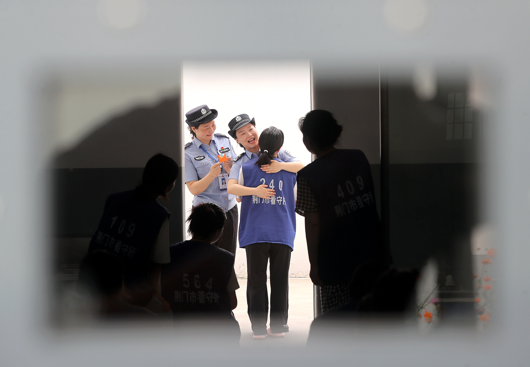 6月20日,在湖北省荊門(mén)市看守所女子監(jiān)區(qū)305監(jiān)室,管教民警將寫(xiě)滿祝福和期望的“千紙鶴”送給在押人員小芬,并送上一個(gè)擁抱,祝福小芬35歲生日。