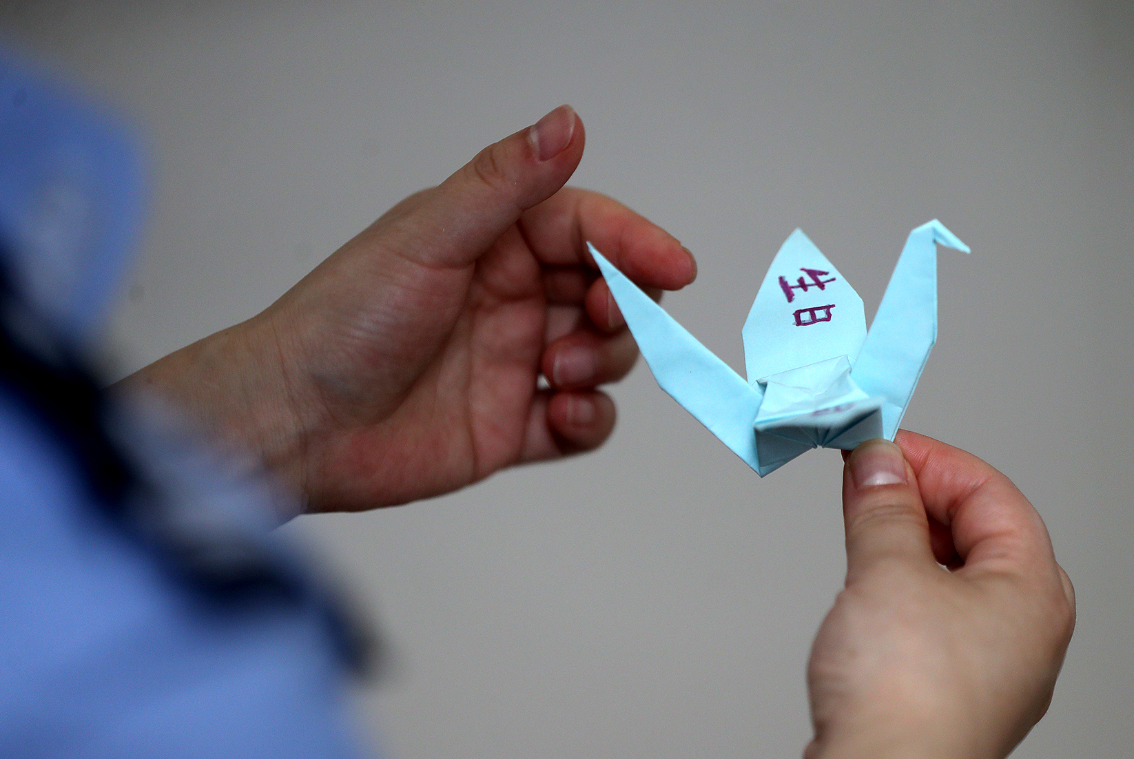 管教民警利用休息時(shí)間,為在押人員小芬制作了35個(gè)“千紙鶴”。