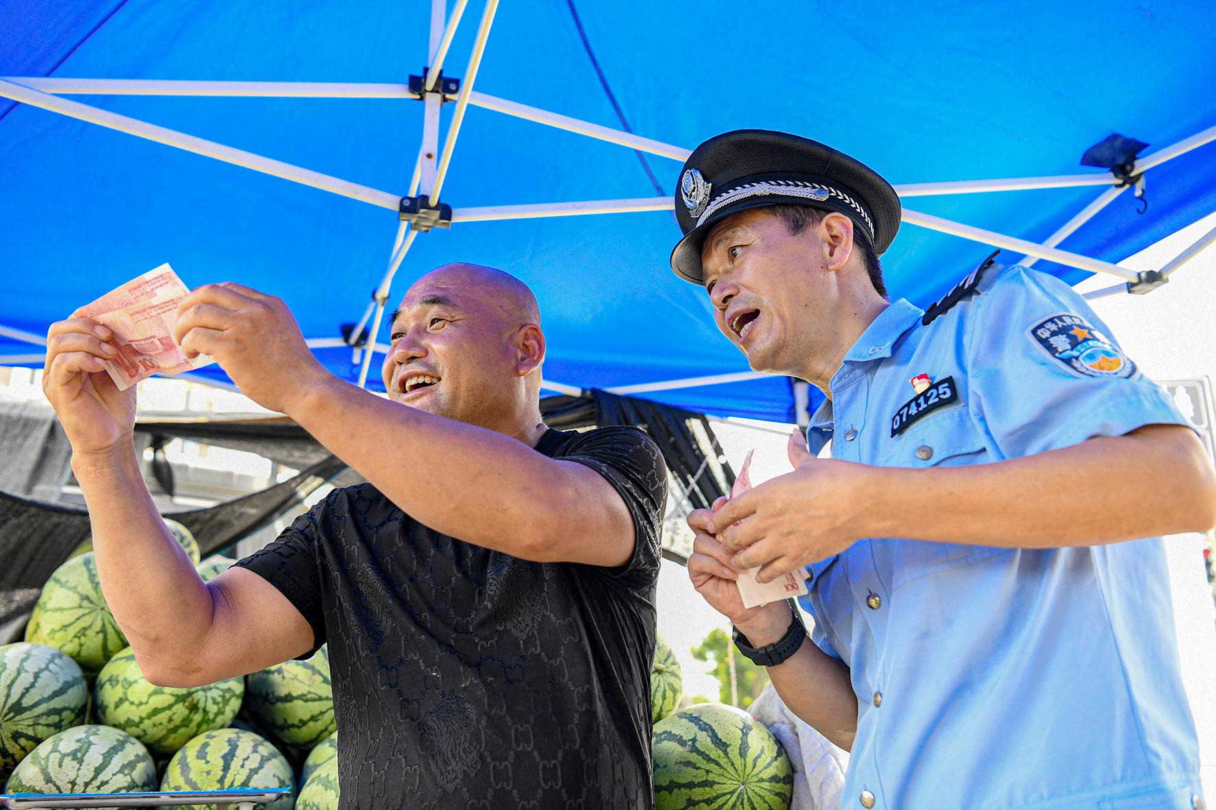 7月24日,安徽省馬鞍山市含山縣公安局環(huán)峰派出所聯(lián)合經(jīng)偵大隊組織民警開展反假幣宣傳活動。