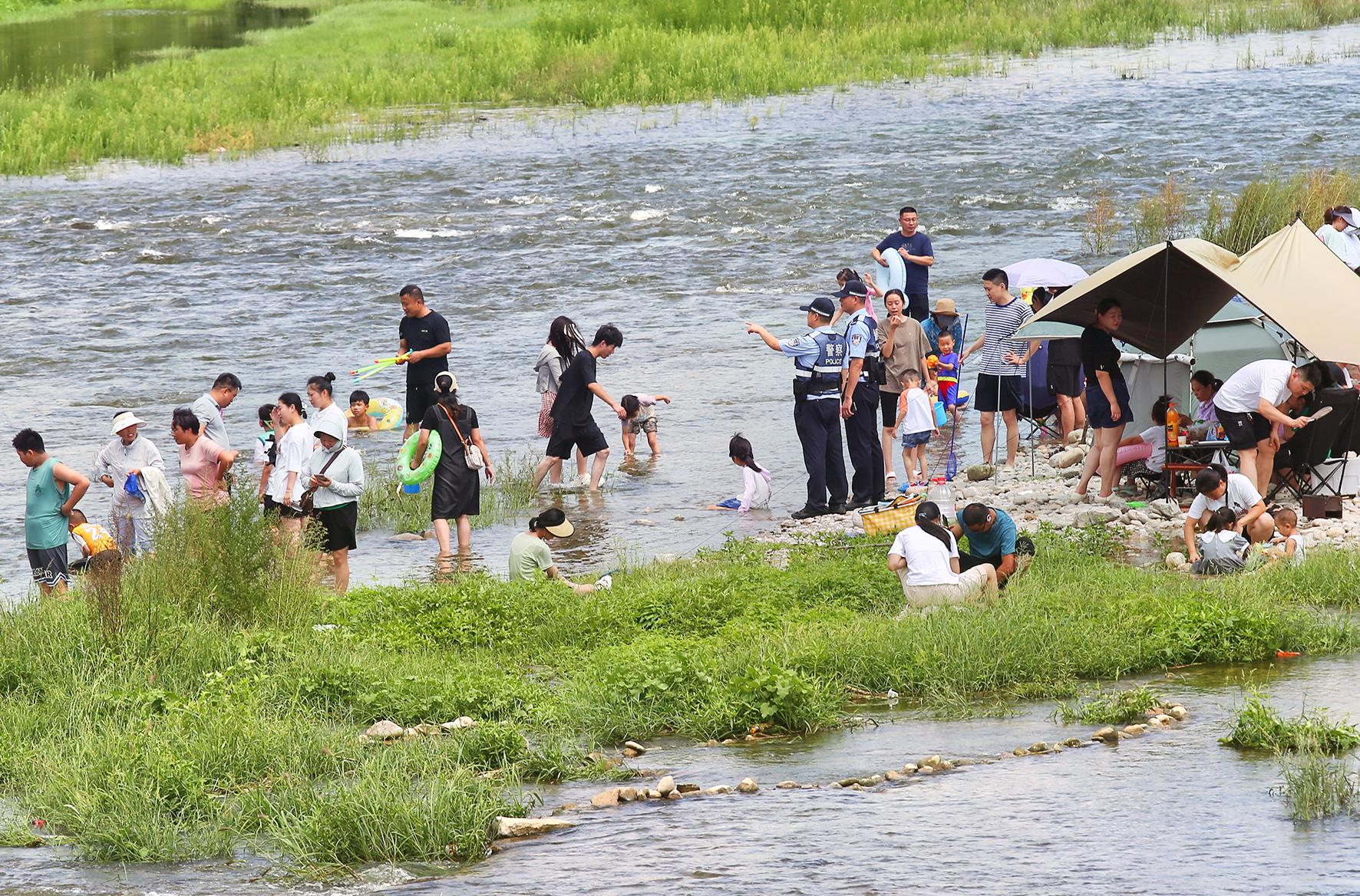 8月2日,山東省濟南市公安局市中區(qū)分局黨家莊派出所民警在玉符河附近巡邏,對下水游玩的市民游客開展安全教育。自夏季治安打擊整治行動開展以來,濟南市公安局市中區(qū)分局持續(xù)強化景區(qū)巡防力度,全面加強隱患排查,全力做好安全宣講,為群眾提供服務,確保轄區(qū)和諧安寧。