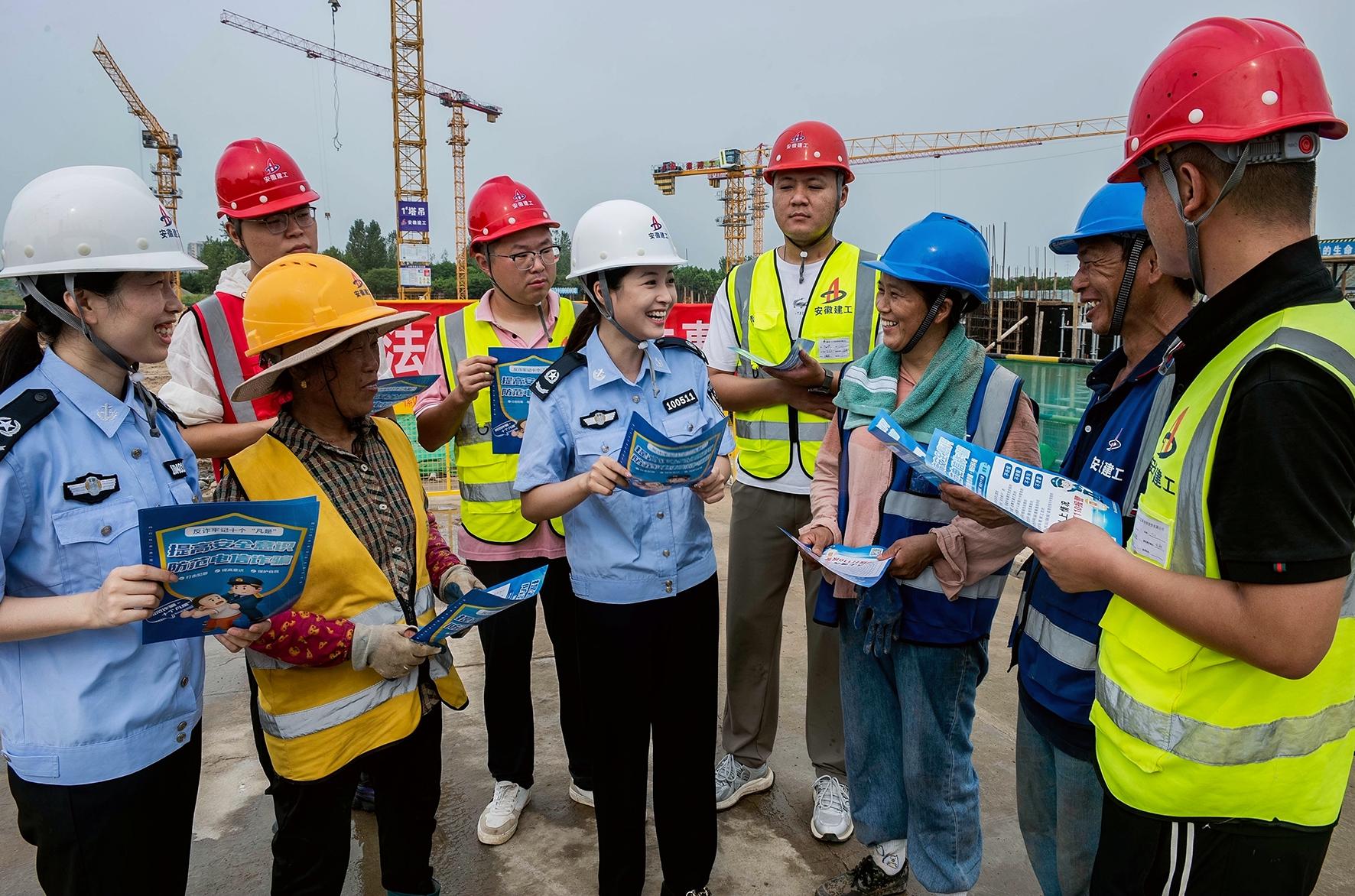 8月19日,安徽省含山縣司法局、縣人社局勞動保障維權(quán)調(diào)處中心聯(lián)合開展“送法進(jìn)工地 普法惠民生”宣傳活動,向農(nóng)民工、項目管理人員宣講保障農(nóng)民工工資支付條例、安全生產(chǎn)法、反電信網(wǎng)絡(luò)詐騙法等法律法規(guī)知識。