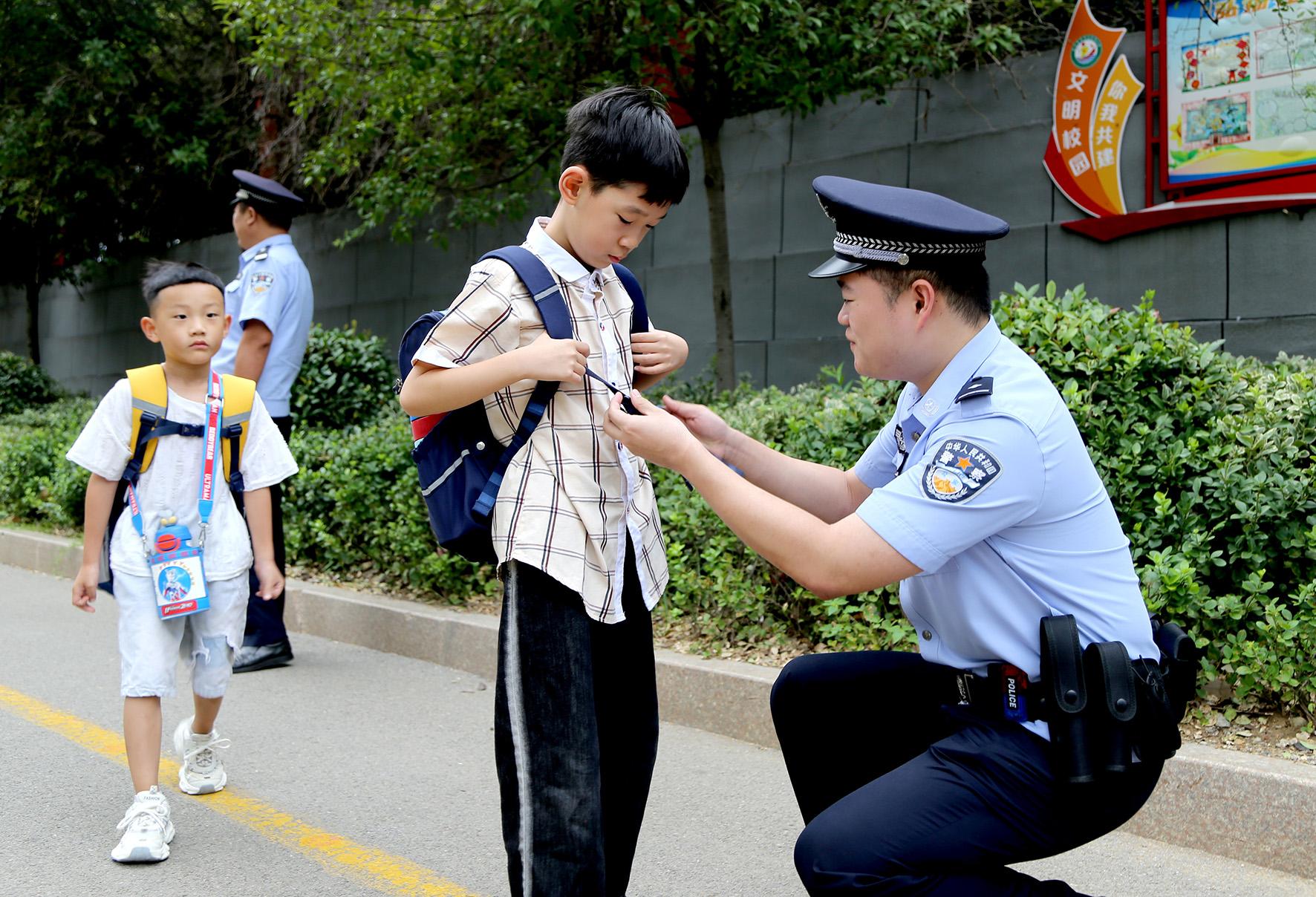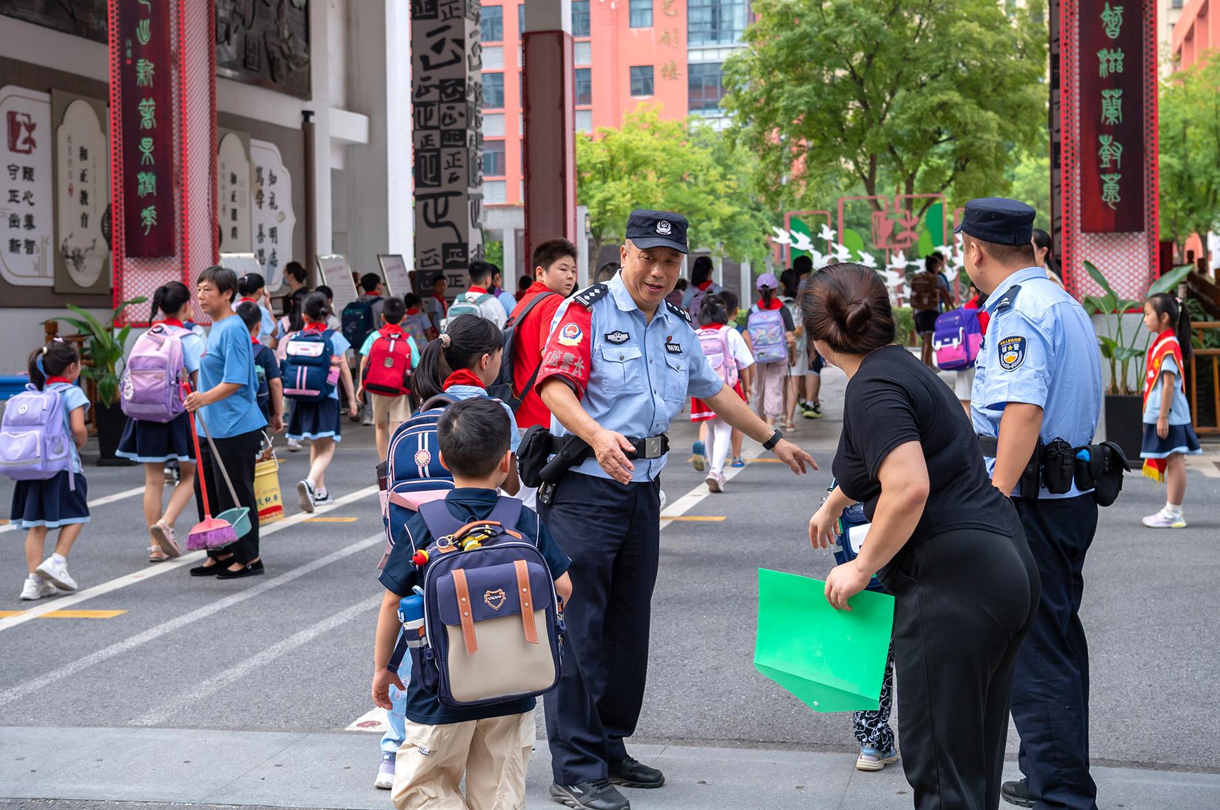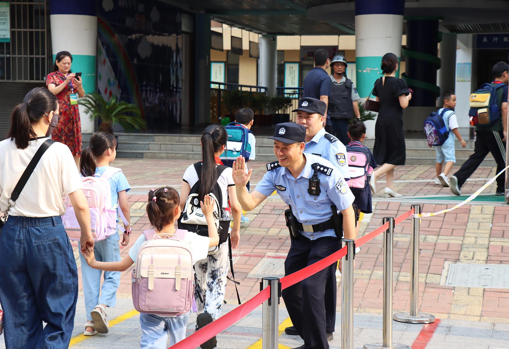 9月2日,安徽省合肥市公安局瑤海分局方廟派出所民警輔警早早來(lái)到轄區(qū)小學(xué)開(kāi)展護(hù)學(xué)崗工作,強(qiáng)化校園周邊巡邏防控,保障良好秩序,用一抹“警察藍(lán)”為師生開(kāi)學(xué)保駕護(hù)航。