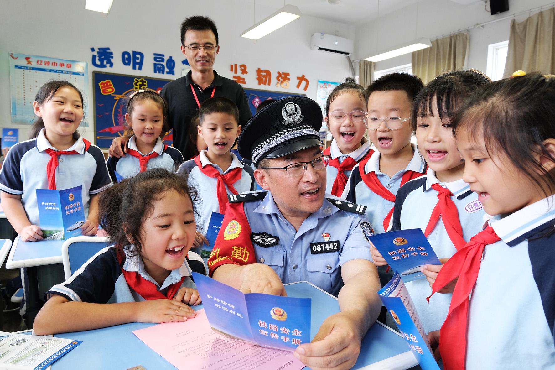 9月2日,杭州公安處長(zhǎng)興站派出所民警來(lái)到長(zhǎng)興太湖街道中心小學(xué)開(kāi)展愛(ài)路護(hù)路普法宣傳活動(dòng)。