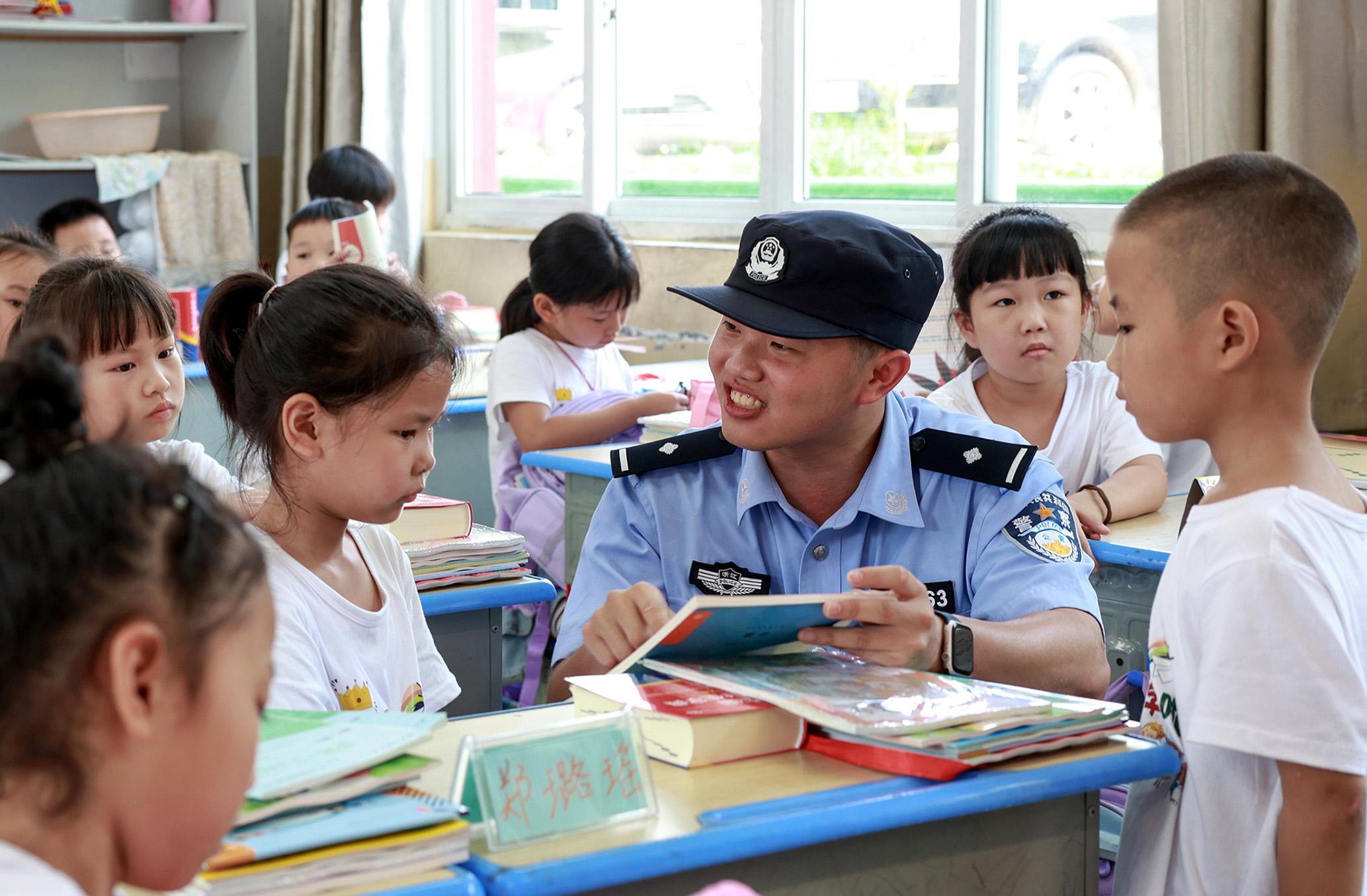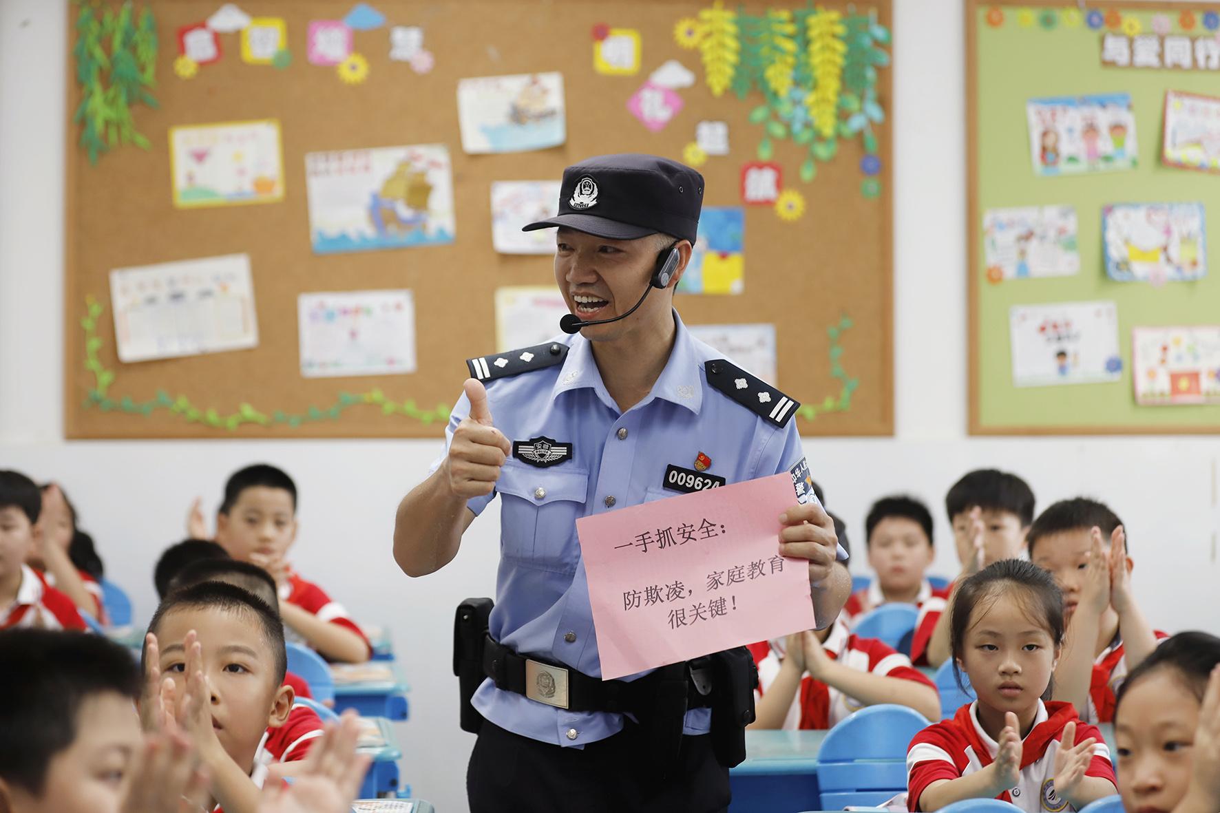 9月2日,浙江省臺(tái)州市公安局黃巖分局新前派出所民警來(lái)到新前小學(xué),給學(xué)生們上“開(kāi)學(xué)安全課”。