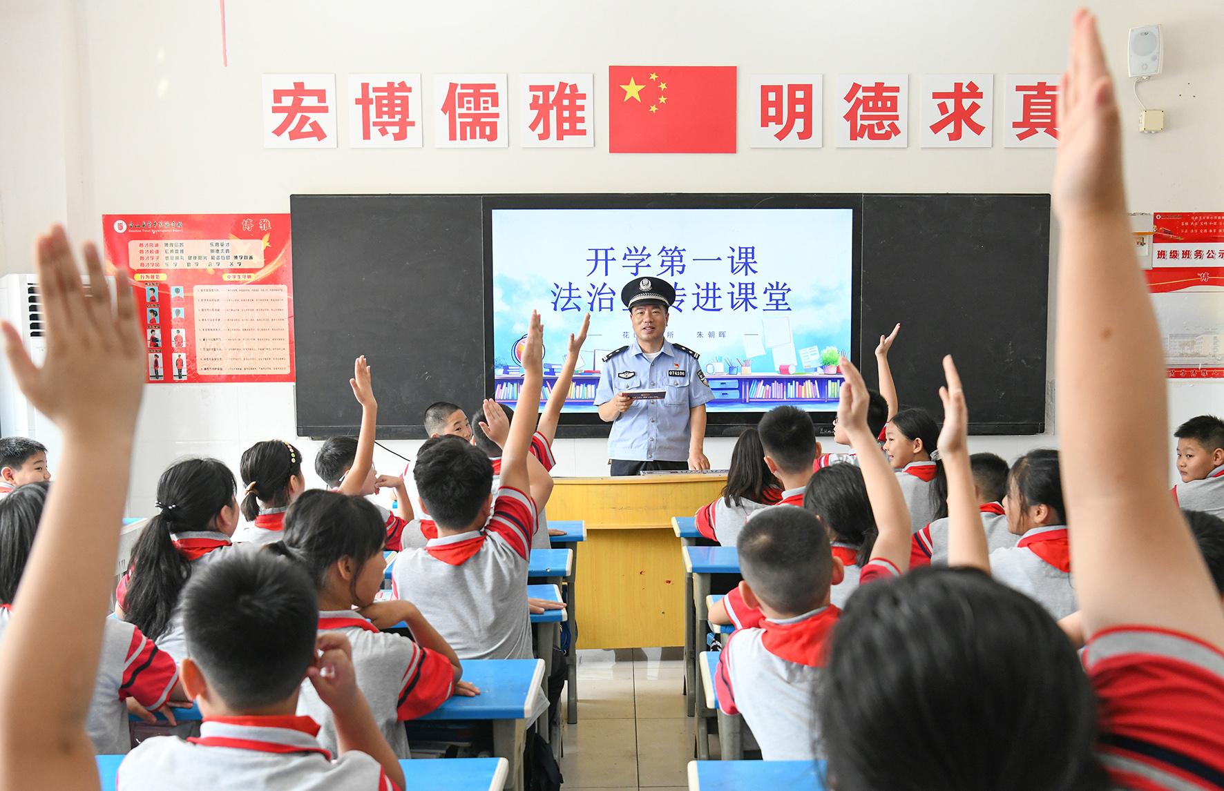 9月2日,山東省濟(jì)南市公安局市中區(qū)分局組織民警走進(jìn)轄區(qū)學(xué)校給學(xué)生普及安全知識(shí),上好開(kāi)學(xué)“第一課”。