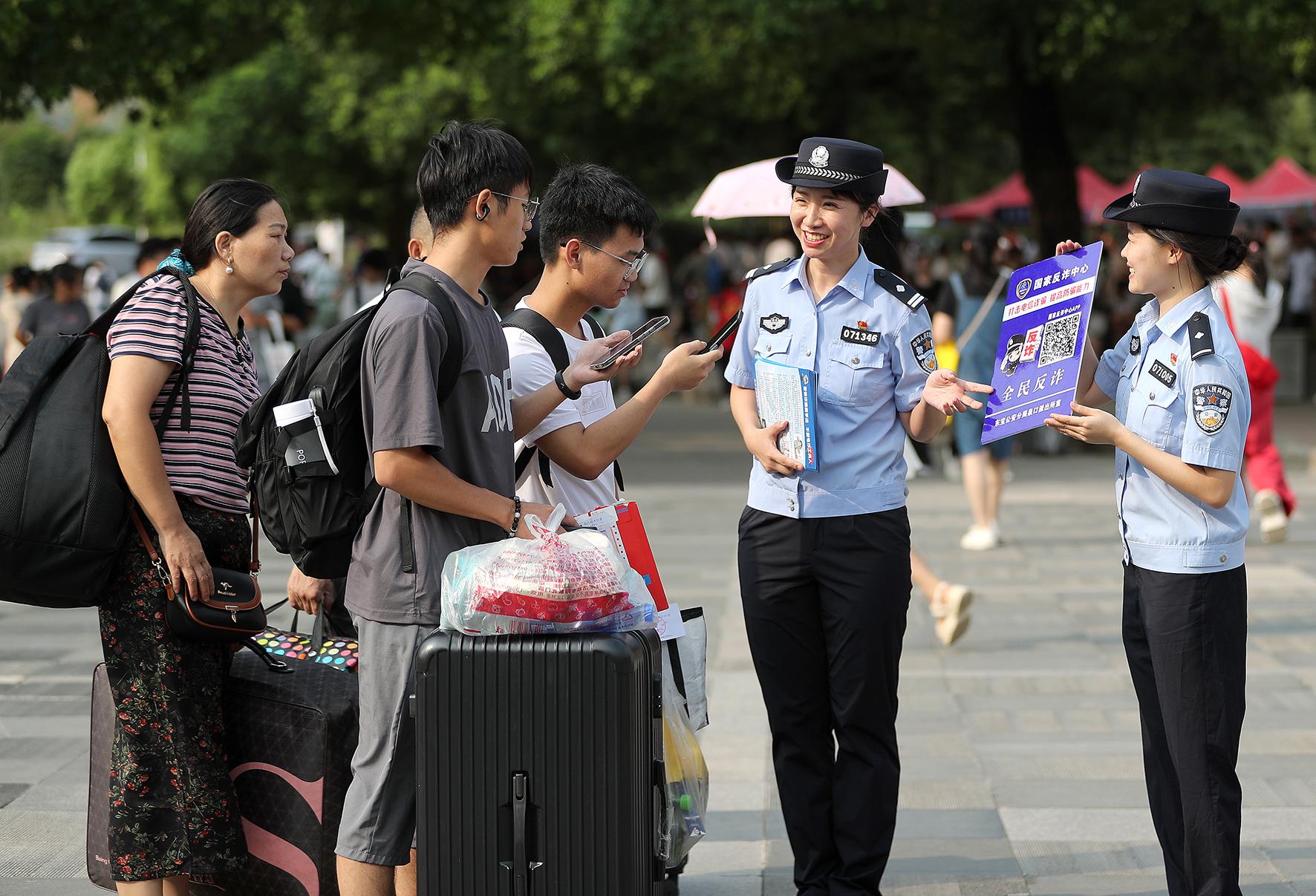 “你好,新同學!請掃碼下載國家反詐中心App……”9月6日,湖北省荊門市公安局東寶分局泉口派出所民警在荊楚理工學院新生報名點,引導新生下載國家反詐中心App。