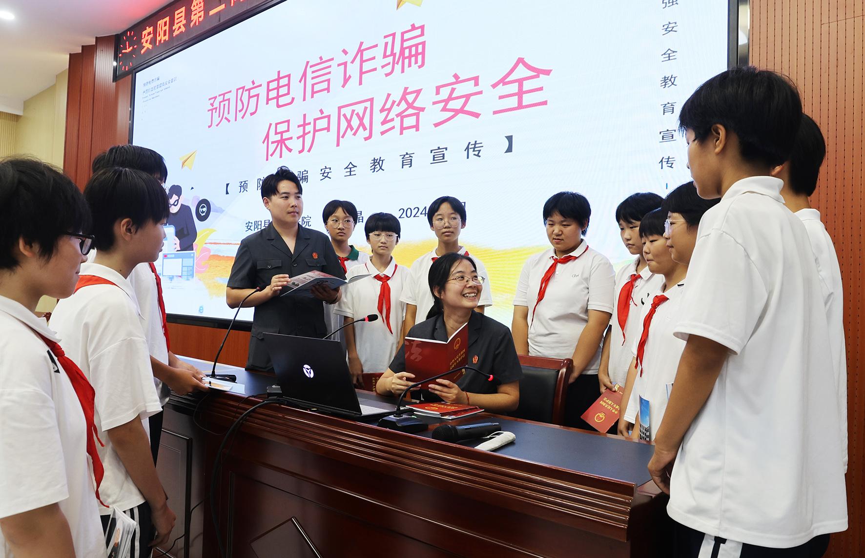 9月20日,河南省安陽縣人民法院組織法官深入第二高級中學(xué)附屬初中開展了以“預(yù)防電信詐騙、保護(hù)網(wǎng)絡(luò)安全”為主題的普法宣傳活動。