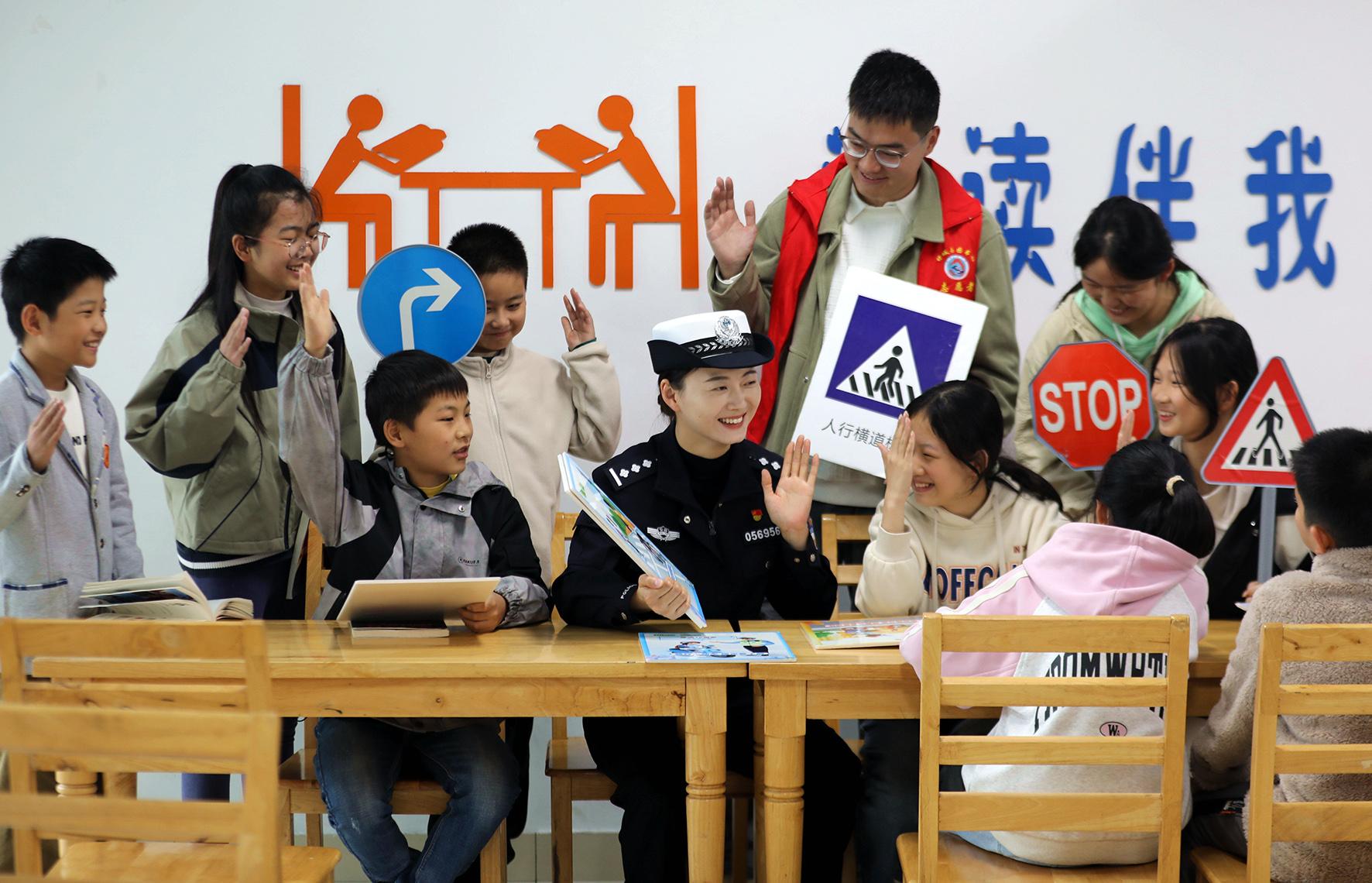 10月26日,安徽省舒城縣公安局交管大隊(duì)民警走進(jìn)圖書館,與館內(nèi)工作人員一起向廣大讀者送上交通安全知識。