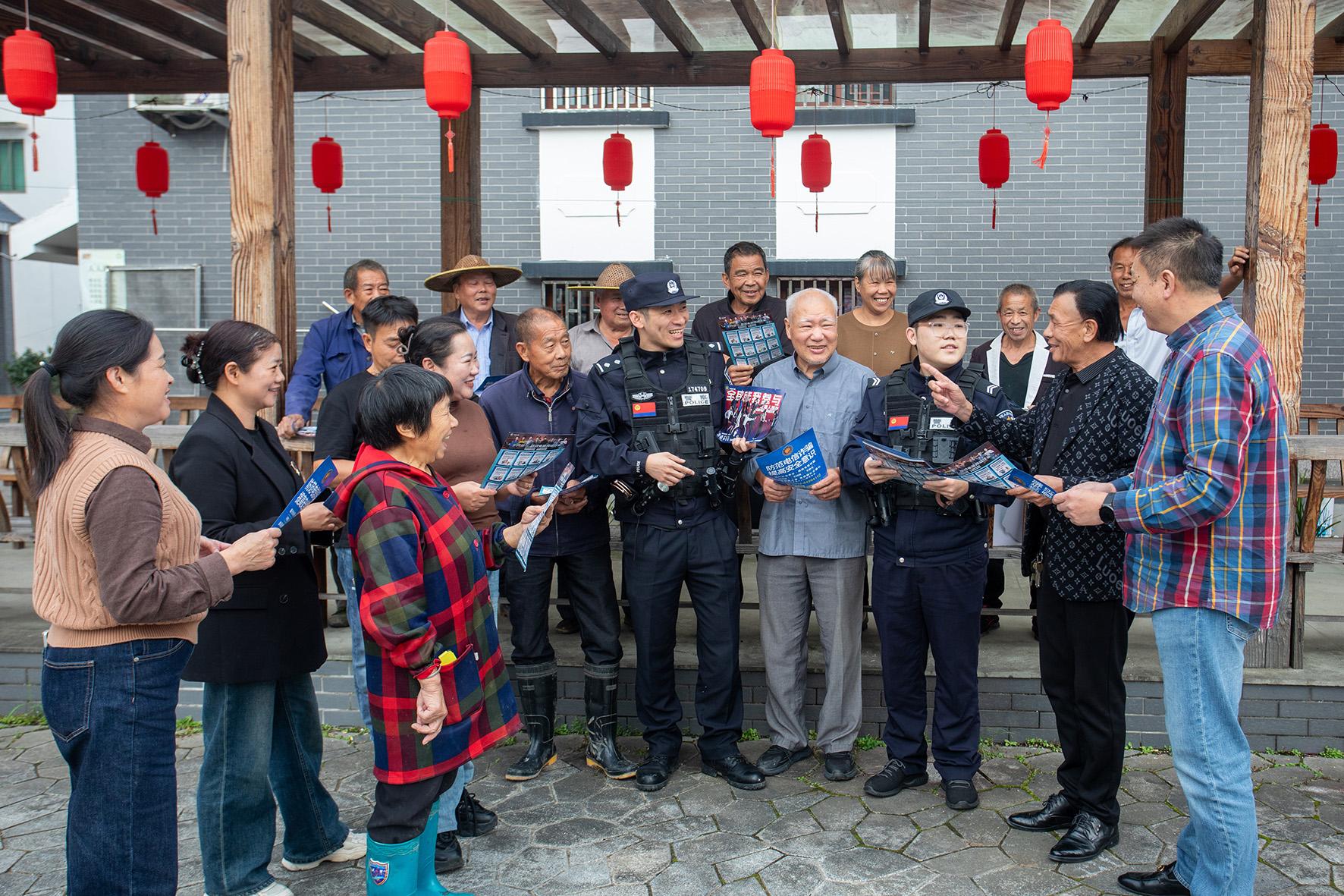 11月4日,浙江省臺州市公安局黃巖分局寧溪派出所民警和“鄉(xiāng)村宣傳大使”把防范電信網(wǎng)絡(luò)詐騙知識編成詼諧的順口溜,在寧溪鎮(zhèn)上宅居開展反詐宣傳活動(dòng)。