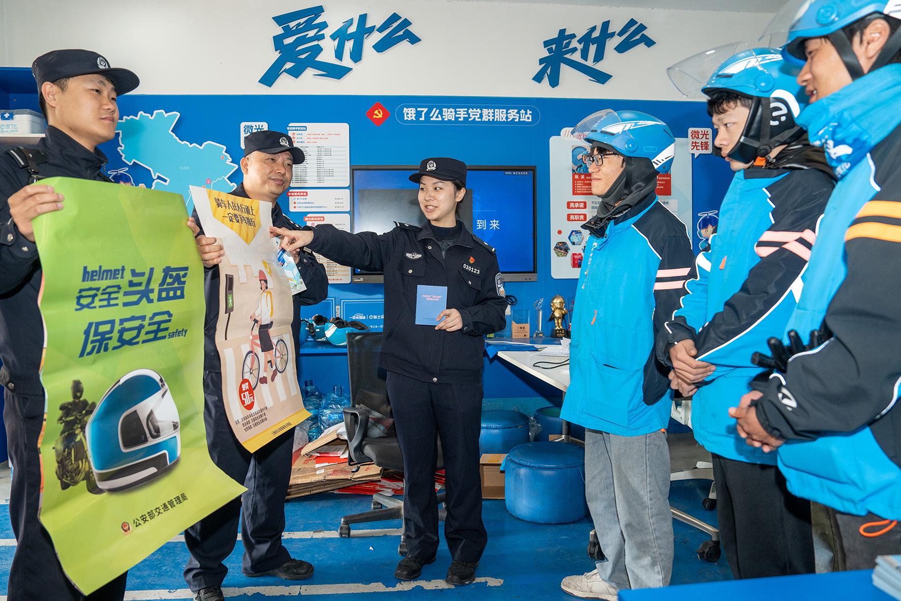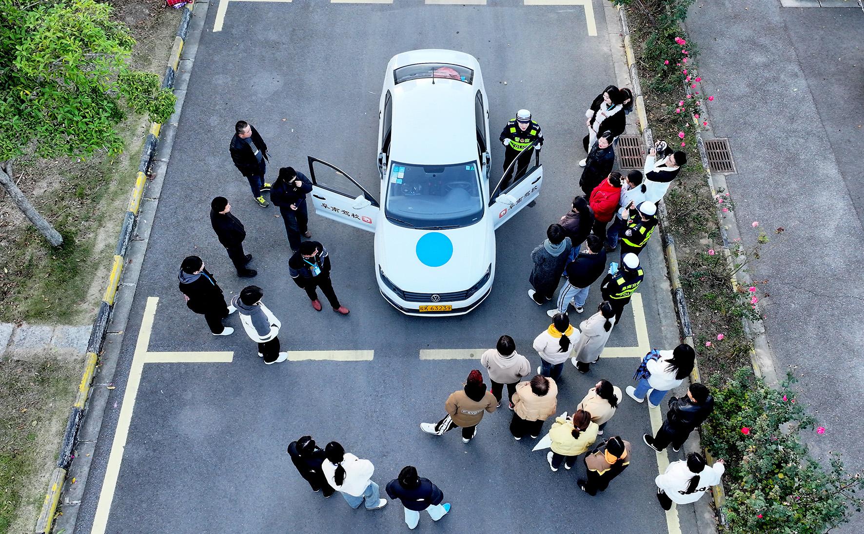 12月1日,安徽省蕪湖市公安局交警支隊弋江大隊民警走進安徽商貿職業(yè)技術學院,開展“文明交通 攜手共創(chuàng)”主題宣傳活動。
