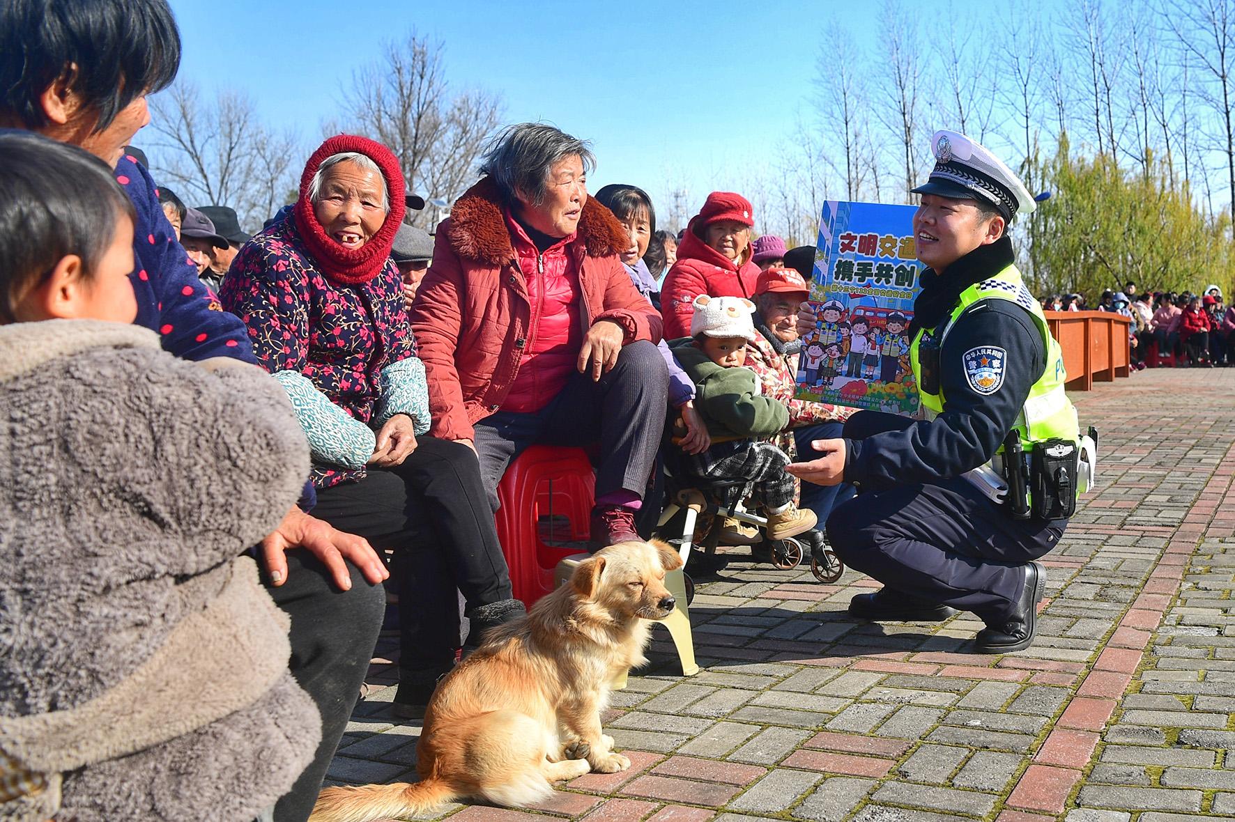 12月16日,安徽省巢湖市公安局交警大隊(duì)民警在蘇灣鎮(zhèn)坊集社區(qū)“四季村晚”群眾文藝匯演現(xiàn)場,向群眾開展交通安全宣傳。