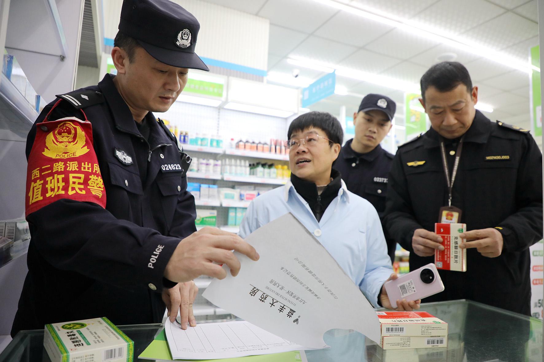 12月24日,江西省九江市公安局八里湖分局西二路派出所民警聯(lián)合市場監(jiān)督部門工作人員,深入轄區(qū)藥店對麻醉藥品和精神藥品的銷售情況等進行檢查,嚴防流入非法渠道。