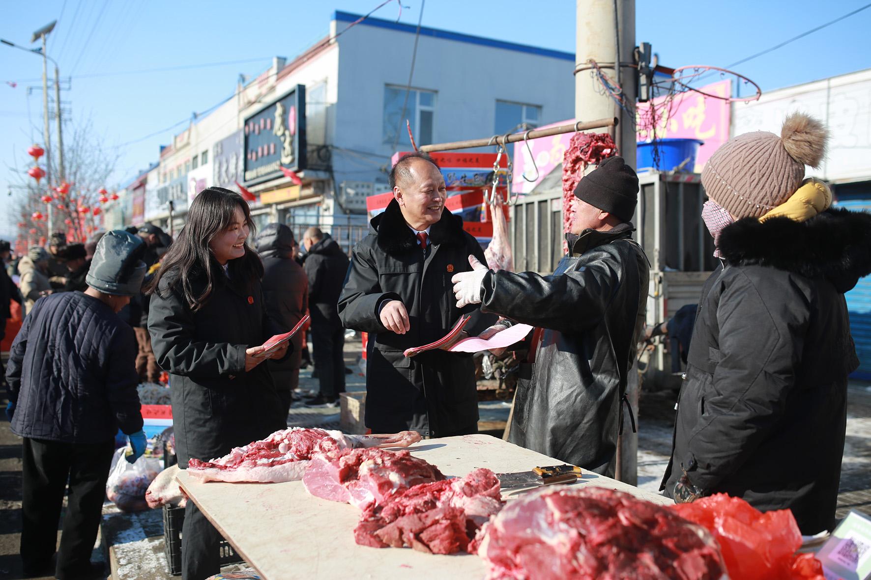 1月14日,吉林省伊通滿族自治縣人民法院營城子法庭法官走進集市,宣講消費者權(quán)益保護法等法律法規(guī)。