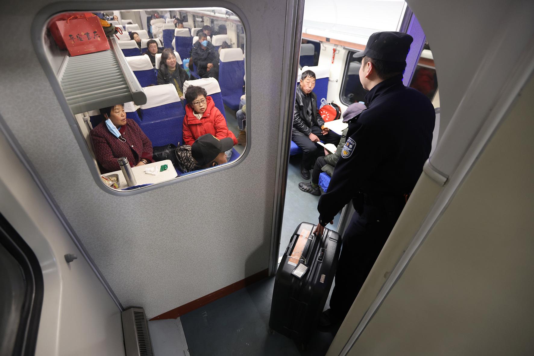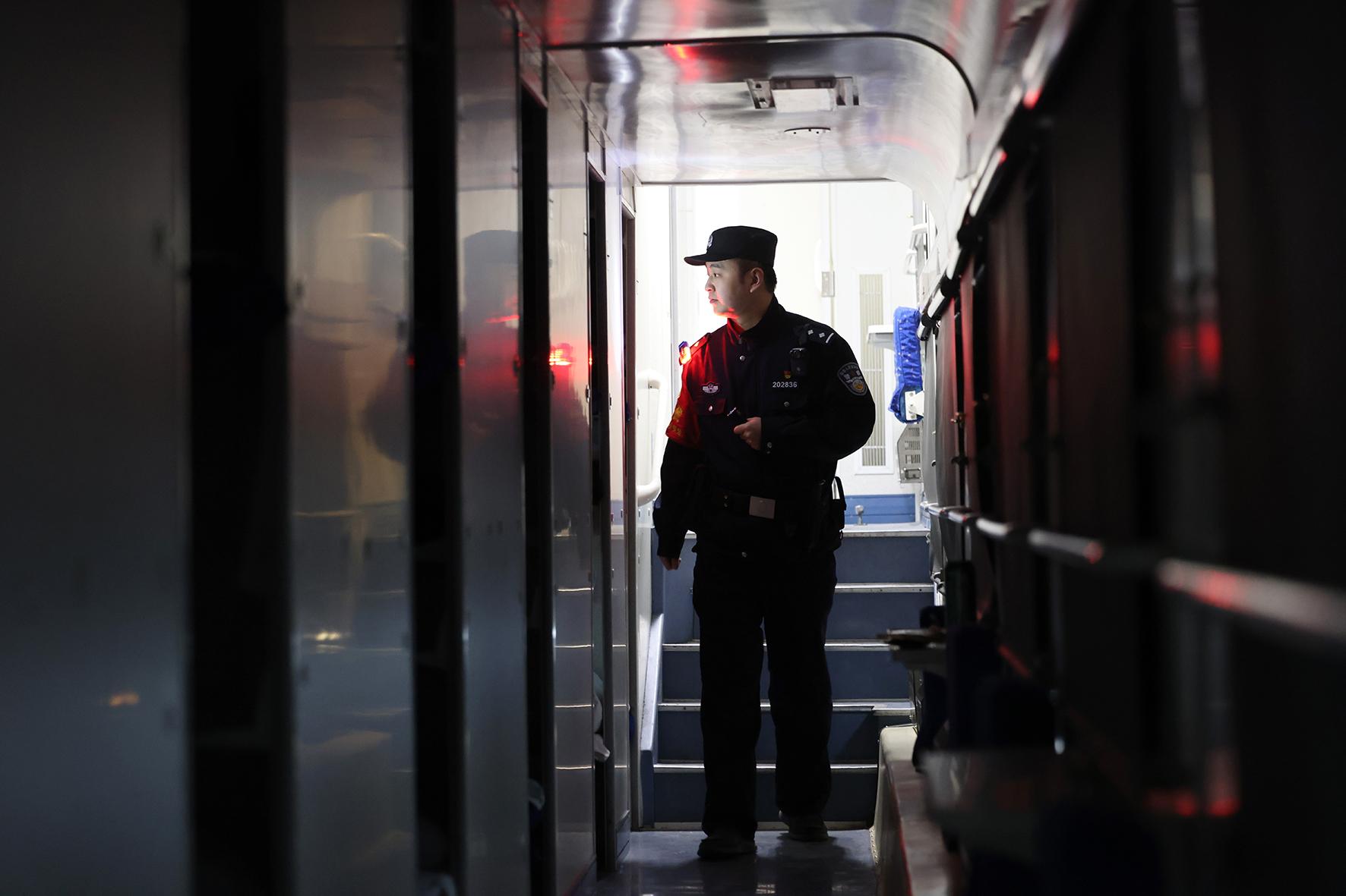乘警李軼豪對臥鋪車廂開展安全巡視。