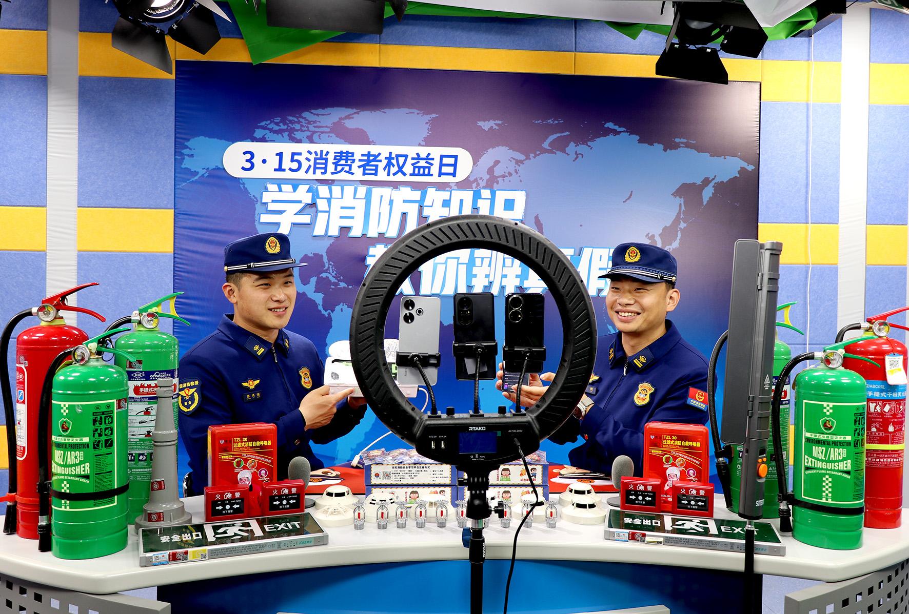 在“3·15”國際消費者權(quán)益日來臨之際,3月12日,山東省棗莊市高新區(qū)消防救援大隊消防員走進(jìn)直播間,通過知識講解、案例分析、實物演示、真假對比、性能測試、線上互動等方式,為網(wǎng)友普及消防產(chǎn)品知識。