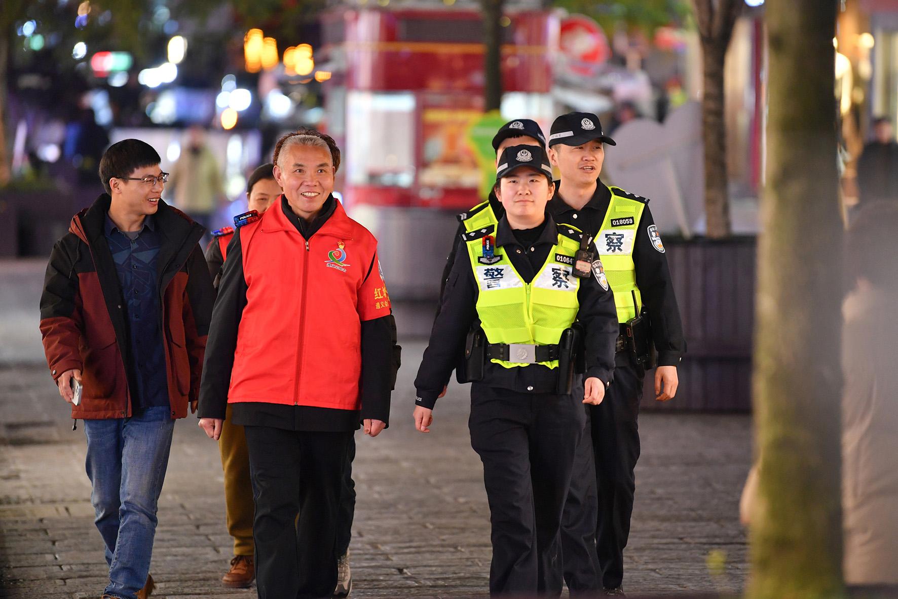 3月18日,貴州省遵義市遵義會議會址派出所民輔警與遵義市志愿服務聯(lián)合會平安志愿者共同開展夜間巡邏工作,全力守護紅色圣地平安。