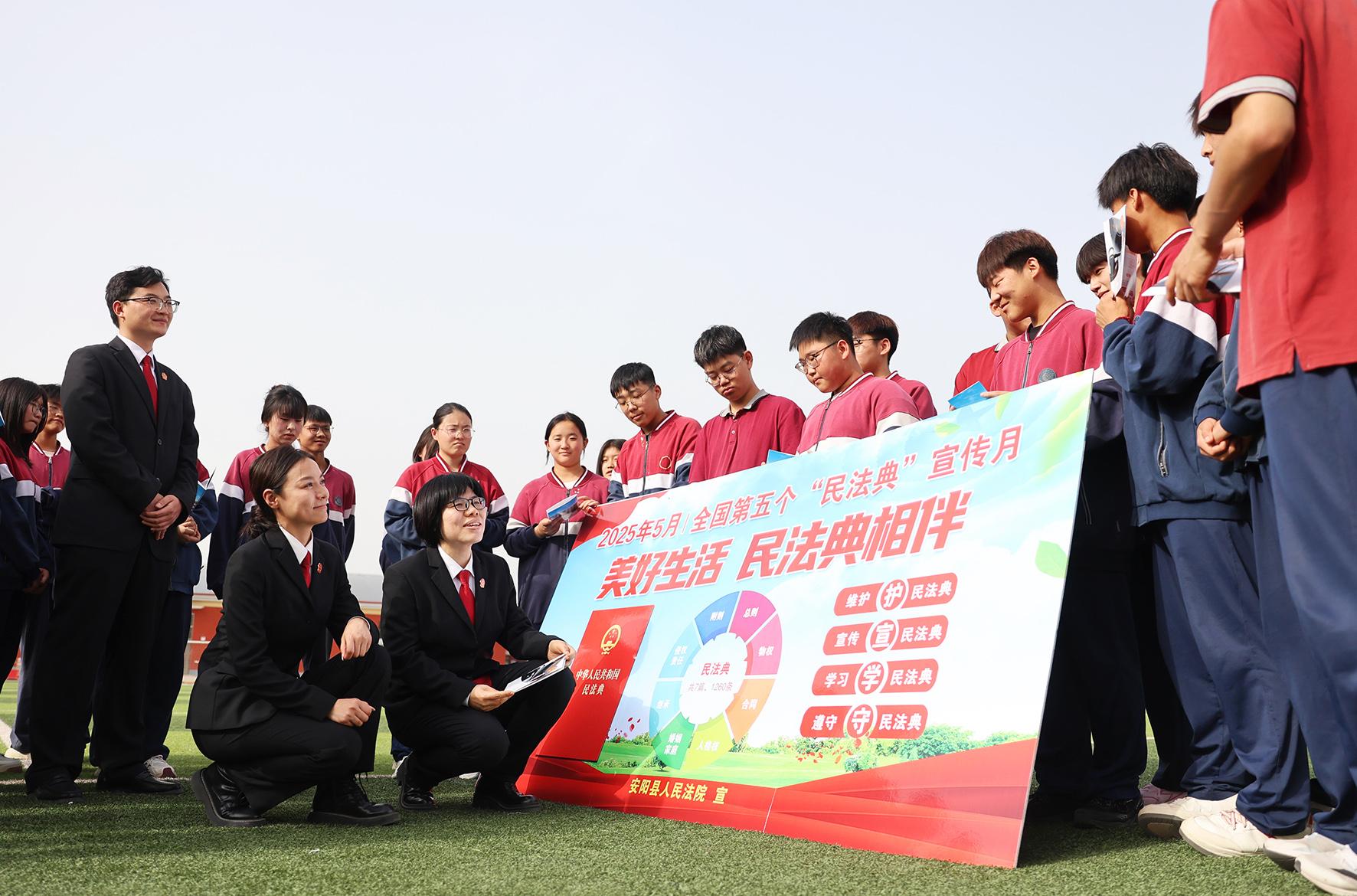 5月7日,河南省安陽縣人民法院組織干警走進明博高級中學(xué)開展“民法典進校園”普法宣傳活動。