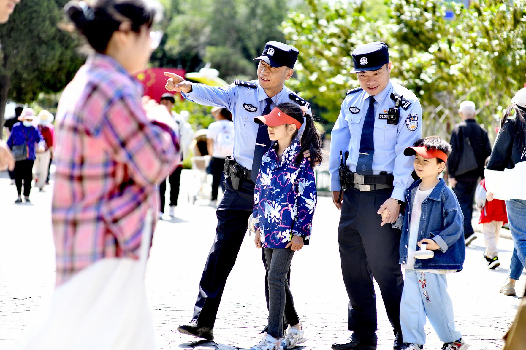 5月3日,河南省鄭州市公安局金水分局民輔警在轄區(qū)執(zhí)勤巡邏,服務(wù)游客。