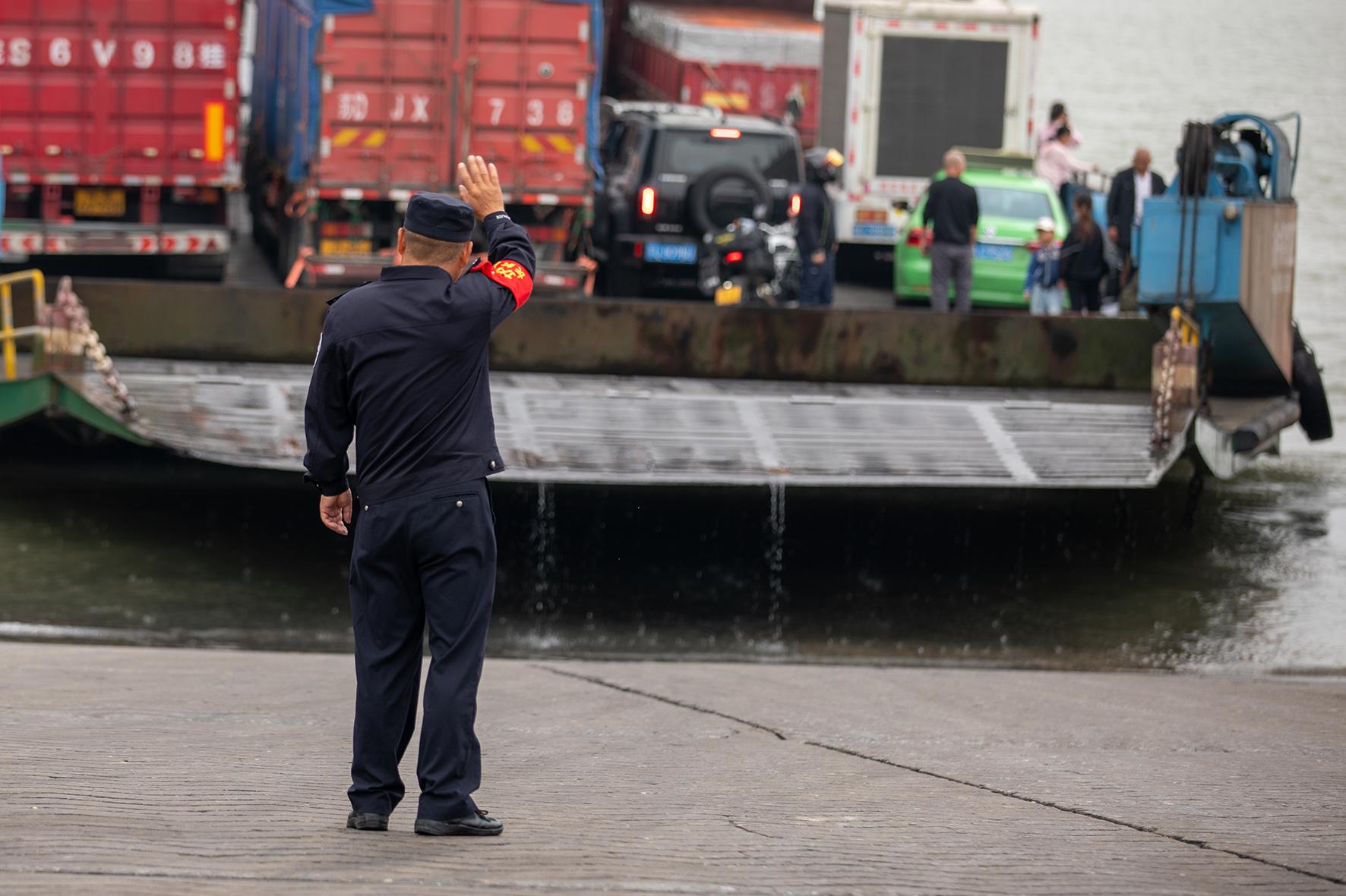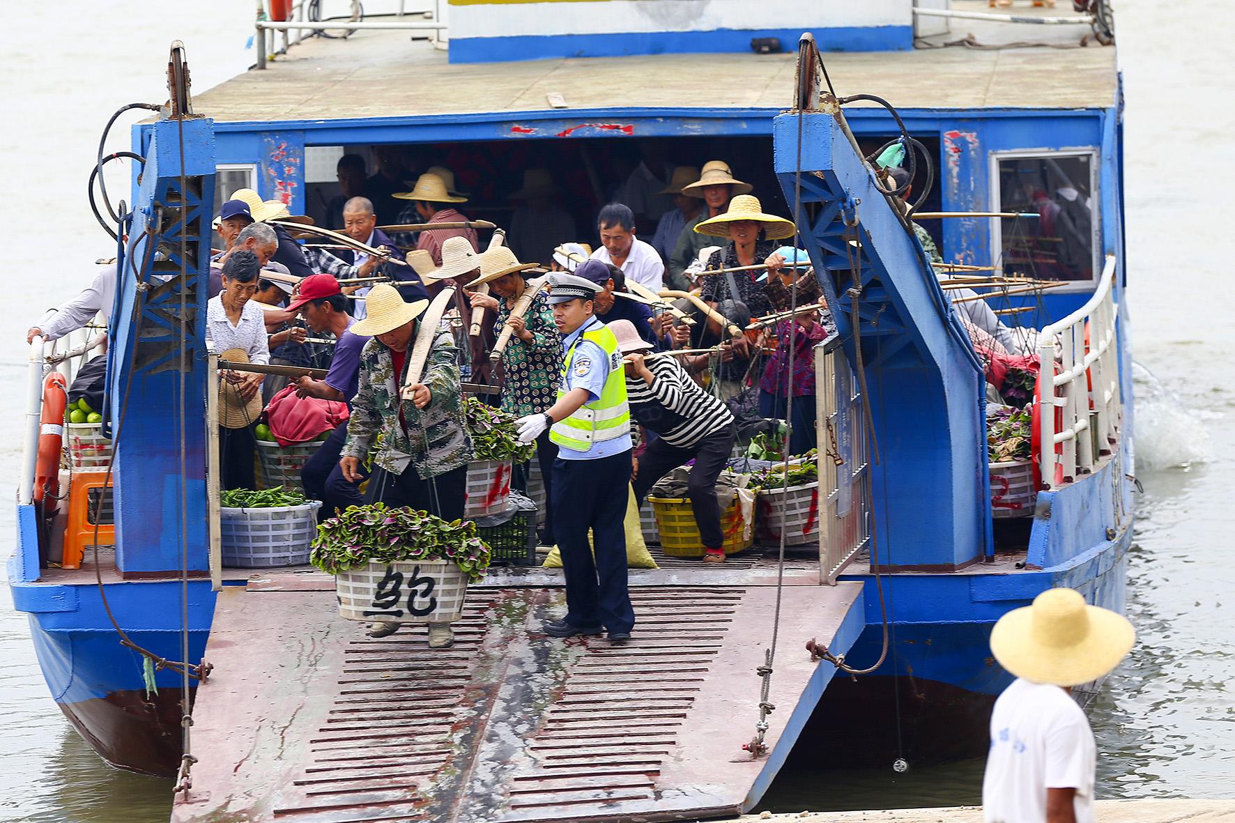 5月3日,安徽省銅陵市公安局交警支隊(duì)輔警堅(jiān)守在郊區(qū)大通古鎮(zhèn)與長江江心洲之間的船運(yùn)渡口,保障江心洲上的菜農(nóng)運(yùn)輸蔬菜來往安全。