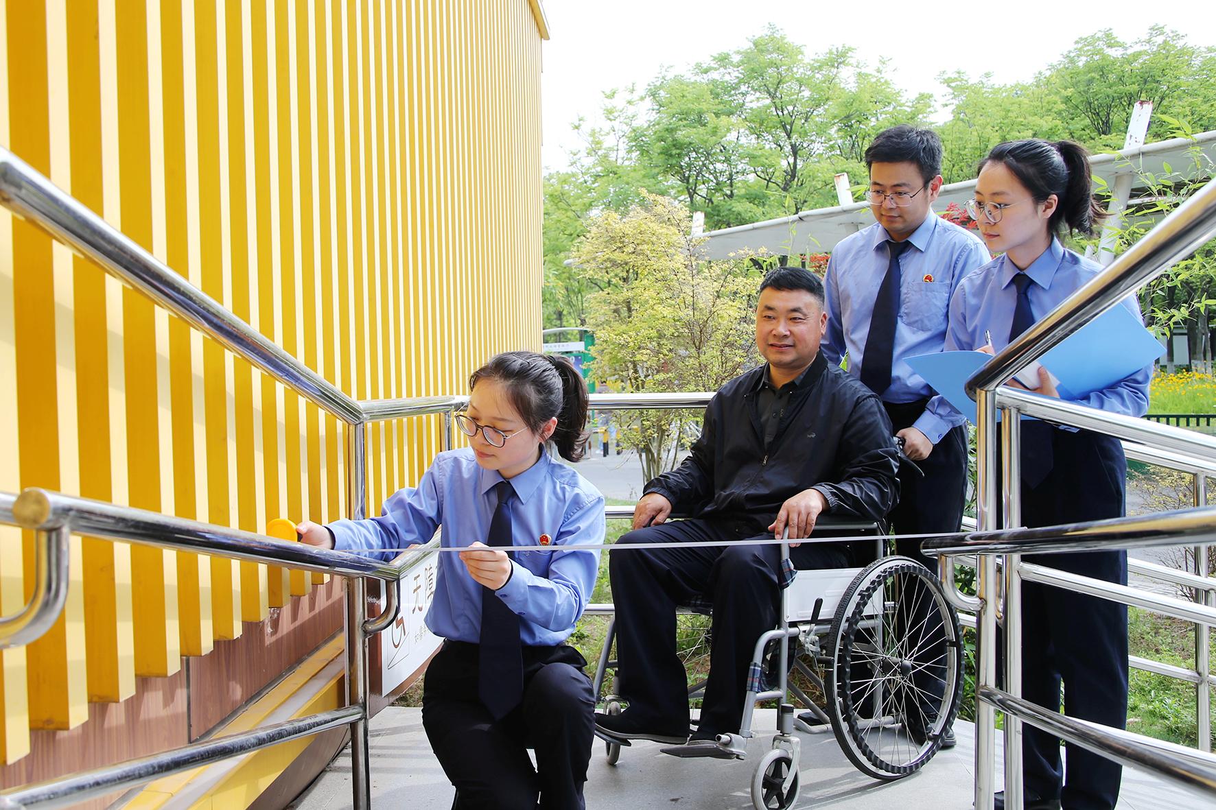 5月13日,在第35個(gè)全國助殘日前夕,江蘇省睢寧縣檢察院公益訴訟辦案團(tuán)隊(duì)開展無障礙環(huán)境建設(shè)專項(xiàng)監(jiān)督行動(dòng),并陪同殘障人士體驗(yàn)升級改造后的無障礙環(huán)境設(shè)施。