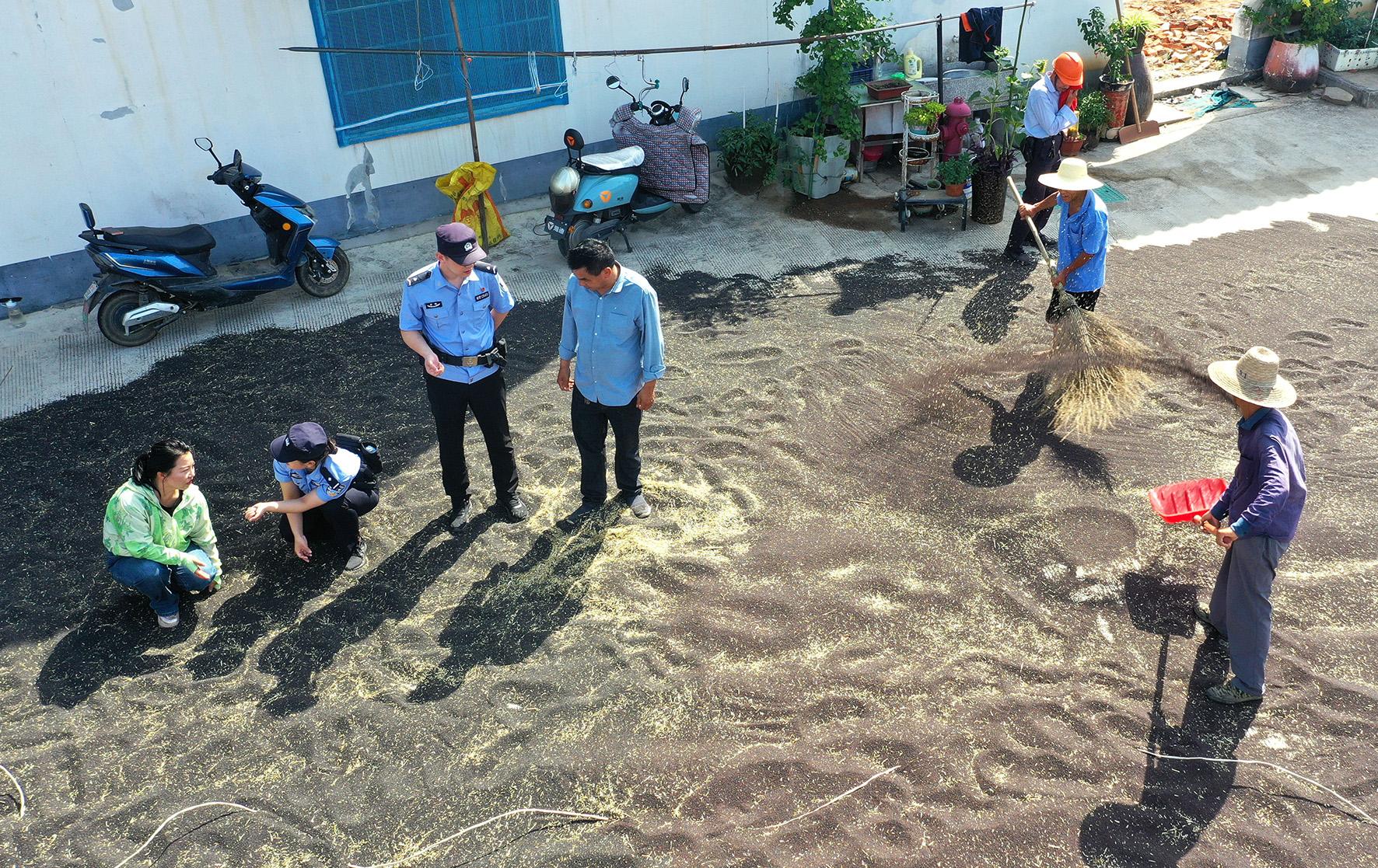 為扎實(shí)做好護(hù)航夏收夏種工作,5月19日,安徽省舒城縣公安局舒茶派出所民警輔警來(lái)到轄區(qū)沙墩村油菜籽晾曬場(chǎng),走訪(fǎng)了解群眾所需,全力提供服務(wù)幫助。