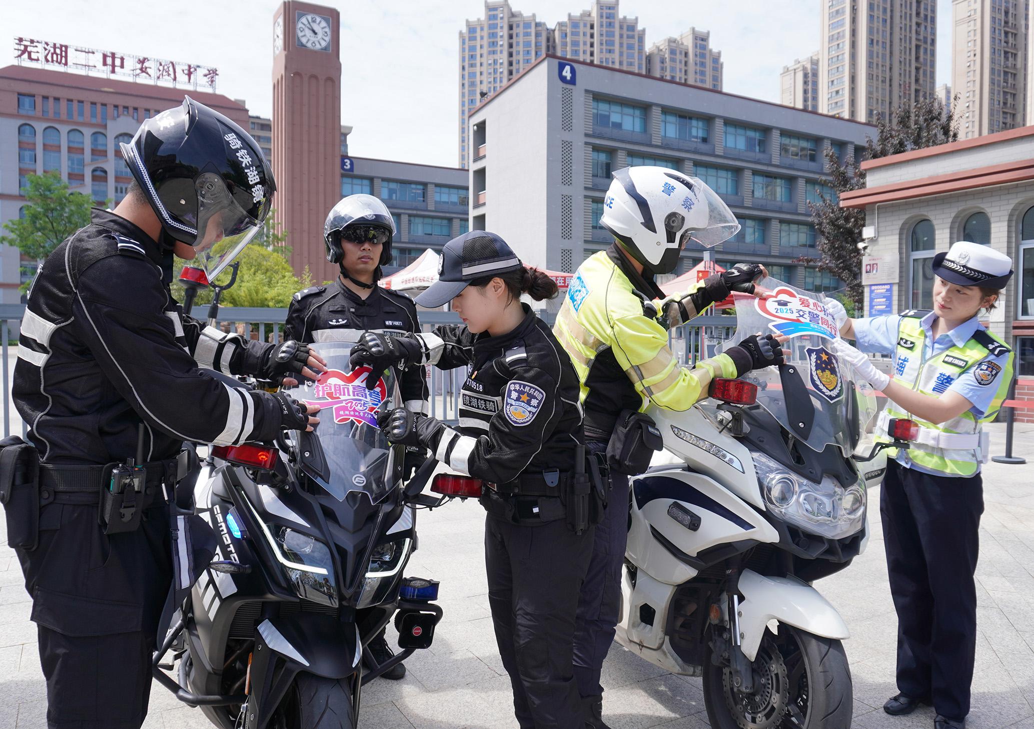 6月5日,安徽省蕪湖市公安局鏡湖分局特巡警大隊(duì)聯(lián)合鏡湖交警大隊(duì)開展2025年“愛心護(hù)考”啟動(dòng)儀式,10輛“愛心送考鐵騎”整裝待發(fā)。