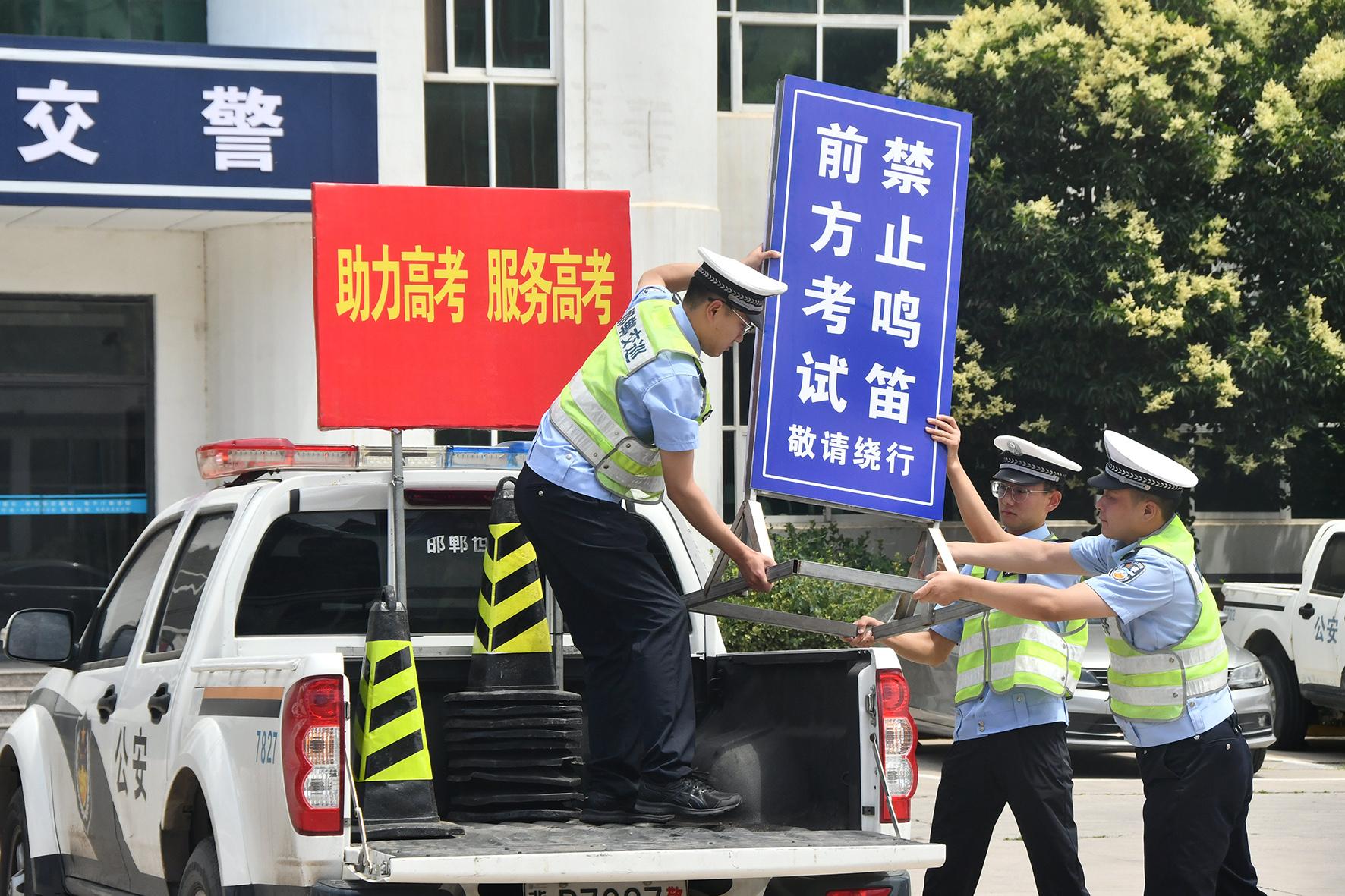 6月5日,河北省邯鄲市公安局交巡警支隊(duì)永年區(qū)大隊(duì)民警將高考相關(guān)交通標(biāo)志牌裝車運(yùn)往考場周邊路段。