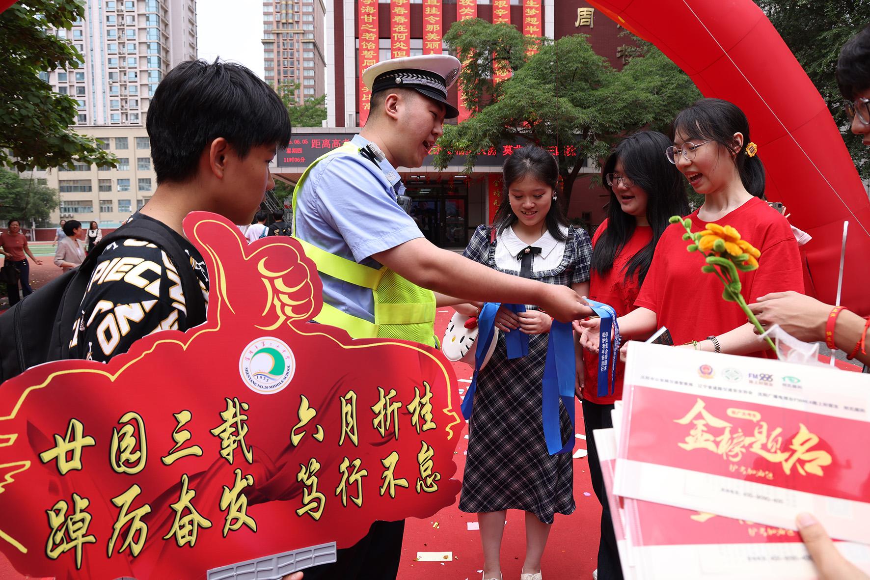 6月5日,遼寧省沈陽市公安局交通管理支隊(duì)和平大隊(duì)民警來到學(xué)校將護(hù)考“藍(lán)絲帶”送到考生手中,系有“藍(lán)絲帶”的車輛予以優(yōu)先放行,并倡導(dǎo)社會(huì)車輛主動(dòng)讓行“藍(lán)絲帶”送考車輛。