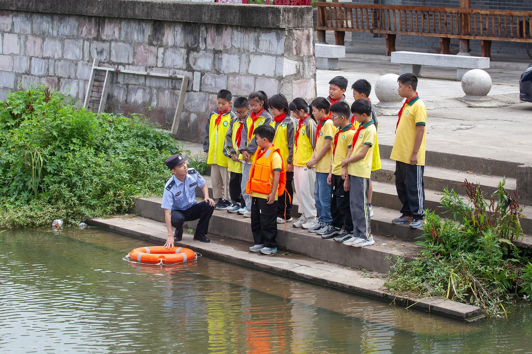 6月5日,浙江省臺州市公安局黃巖分局城東派出所民警來到頭陀小學(xué),向課外活動的小學(xué)生們開展防溺水宣傳。