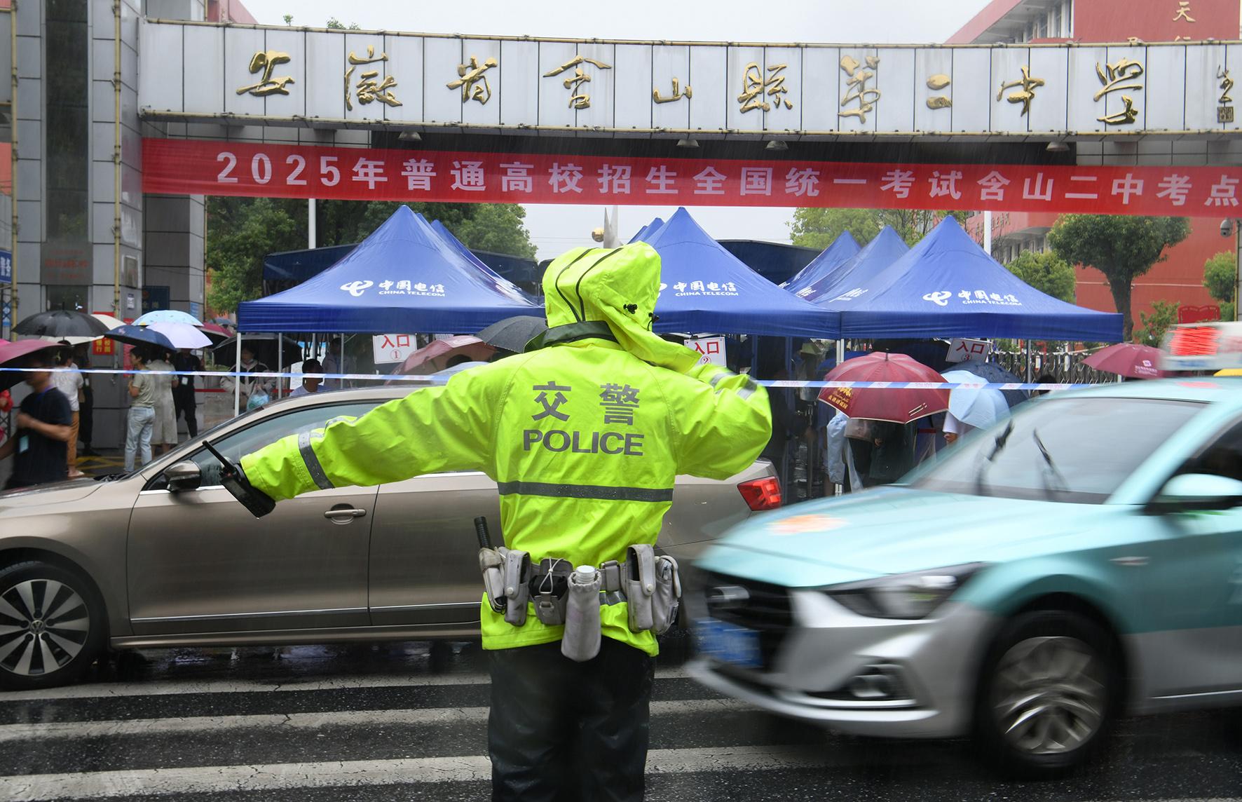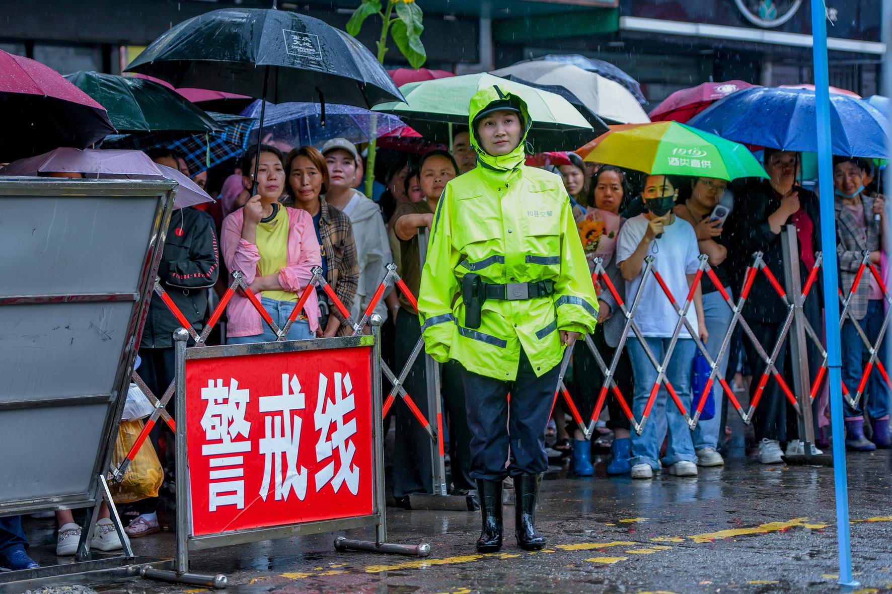 6月7日,江蘇省南通市在雨中迎來(lái)高考。南通市公安局民警全警動(dòng)員,堅(jiān)守崗位,護(hù)航學(xué)子圓夢(mèng)。