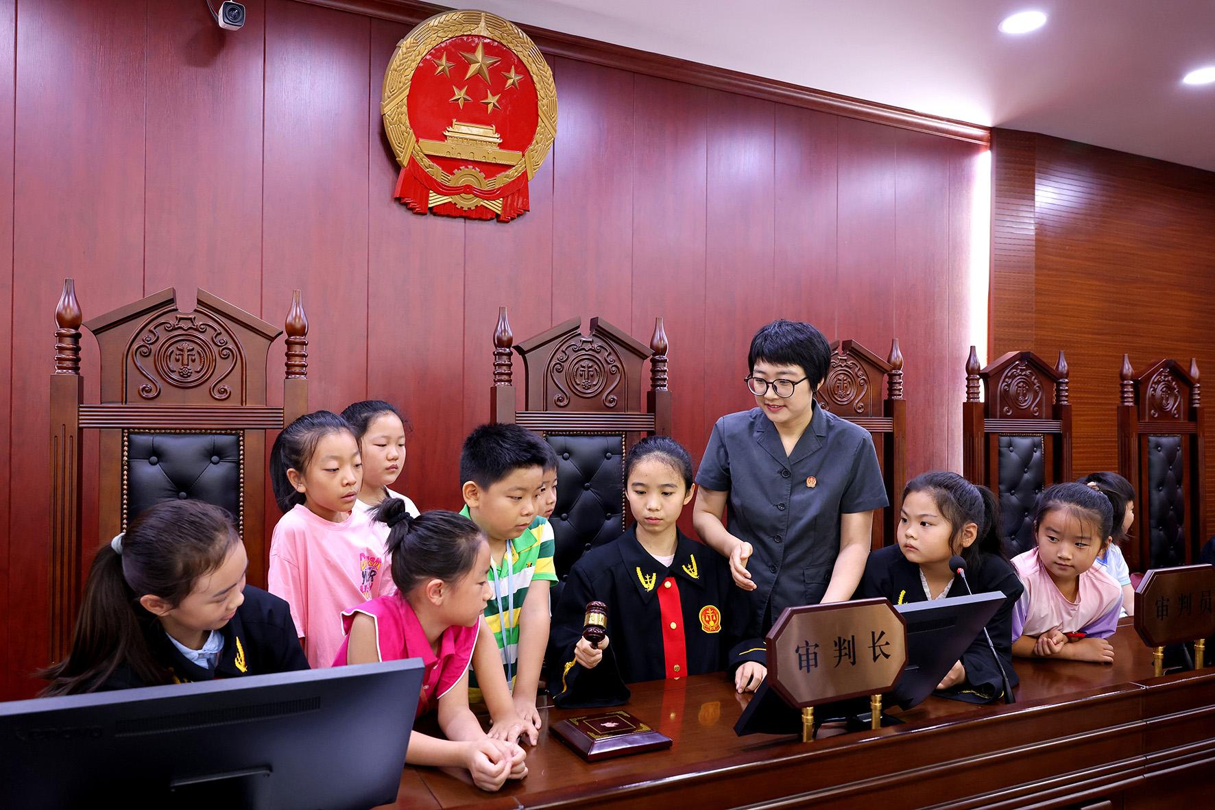 7月24日,山東省棗莊市市中區(qū)人民法院舉行“法院開放日”活動,學(xué)生們通過模擬法庭、法官說法等形式,學(xué)習(xí)法律知識,零距離感受法律的神圣和莊嚴(yán)。