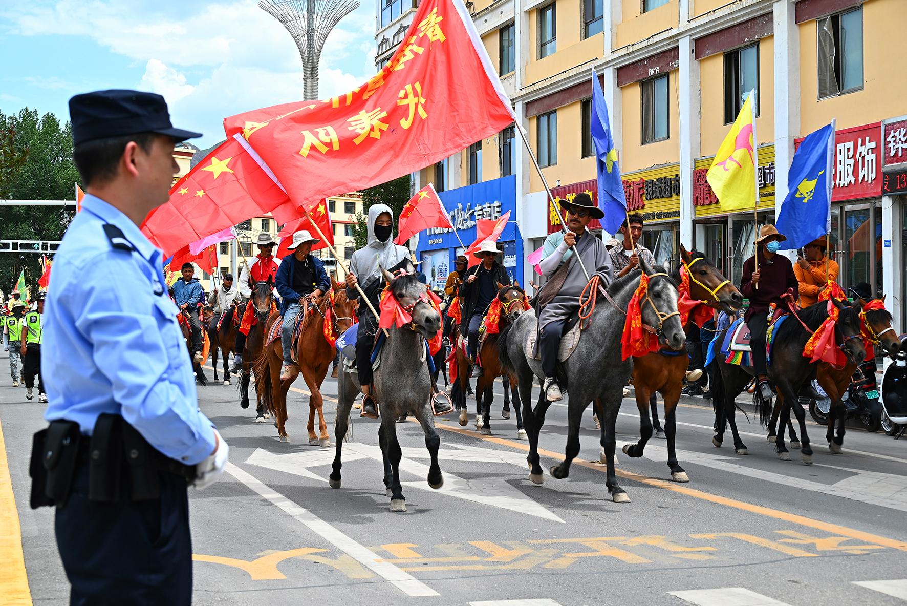 7月28日,甘肅省肅南裕固族自治縣舉辦駿馬巡游活動(dòng)。肅南裕固族自治縣公安局組織50名警力、警車14臺(tái)次,為活動(dòng)進(jìn)行服務(wù)保障工作。