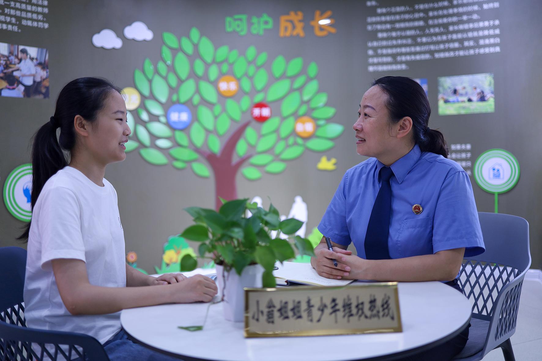8月5日,江蘇省興化市人民檢察院檢察官在法治教育展館向?qū)W生普及未成年人保護相關法律知識。