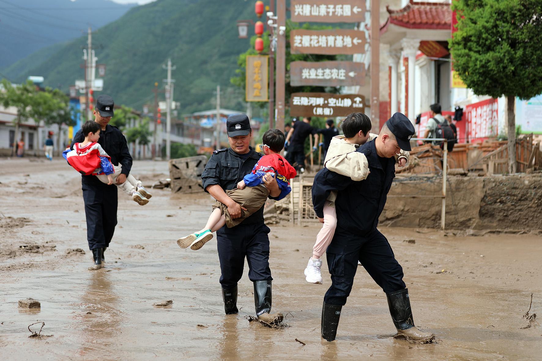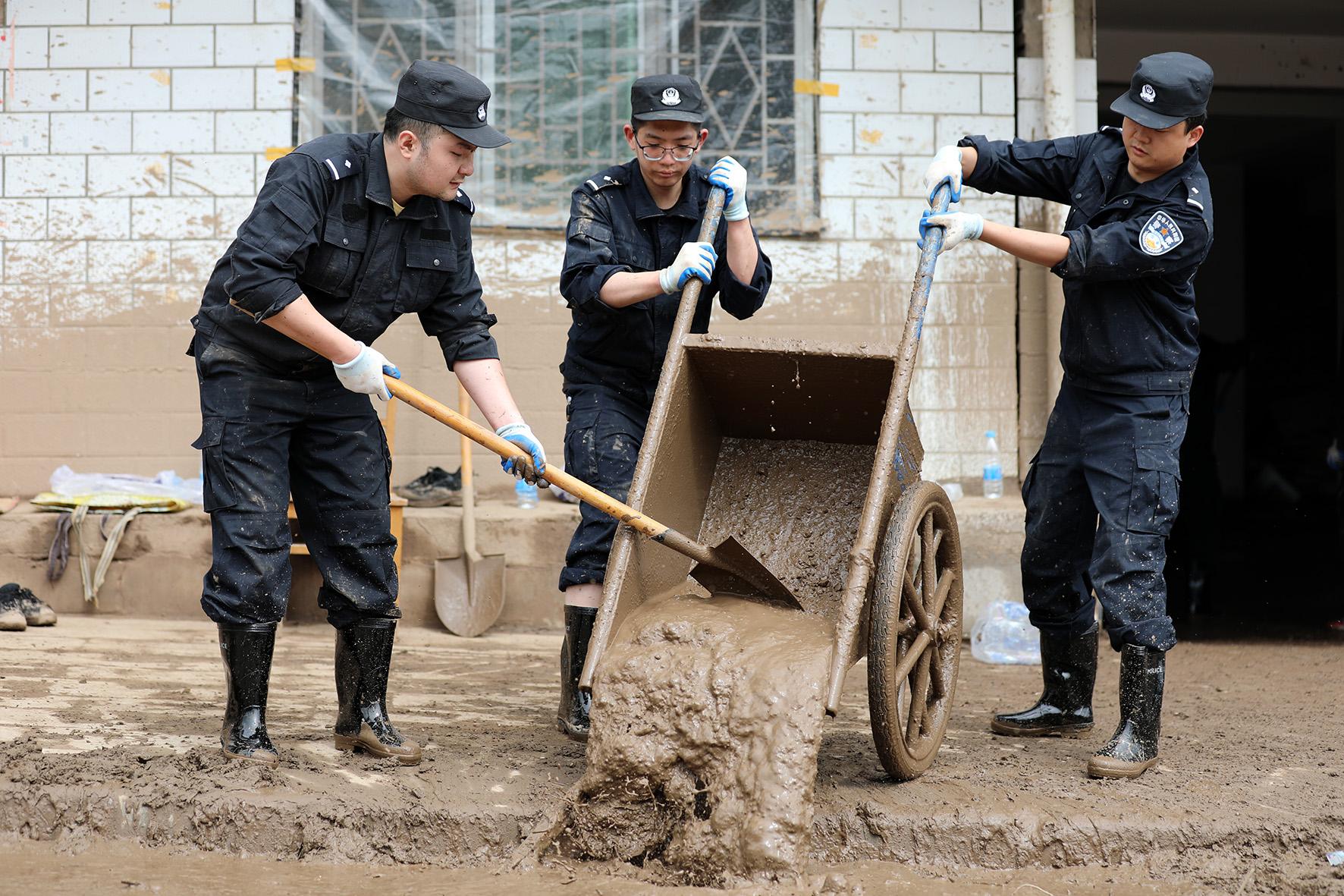 8月9日,甘肅省蘭州市公安局民輔警持續(xù)奮戰(zhàn)在榆中縣救災一線,全力開展受災群眾轉(zhuǎn)移安置、重要物資搶運等工作。