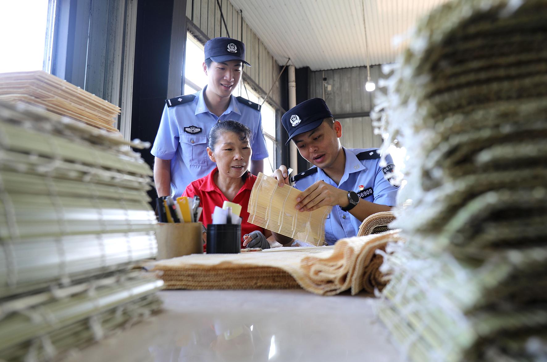 9月5日,安徽省舒城縣公安局張母橋派出所組織民警走進轄區(qū)竹編企業(yè),征求對公安工作的意見與建議,同時普及安全防范知識。