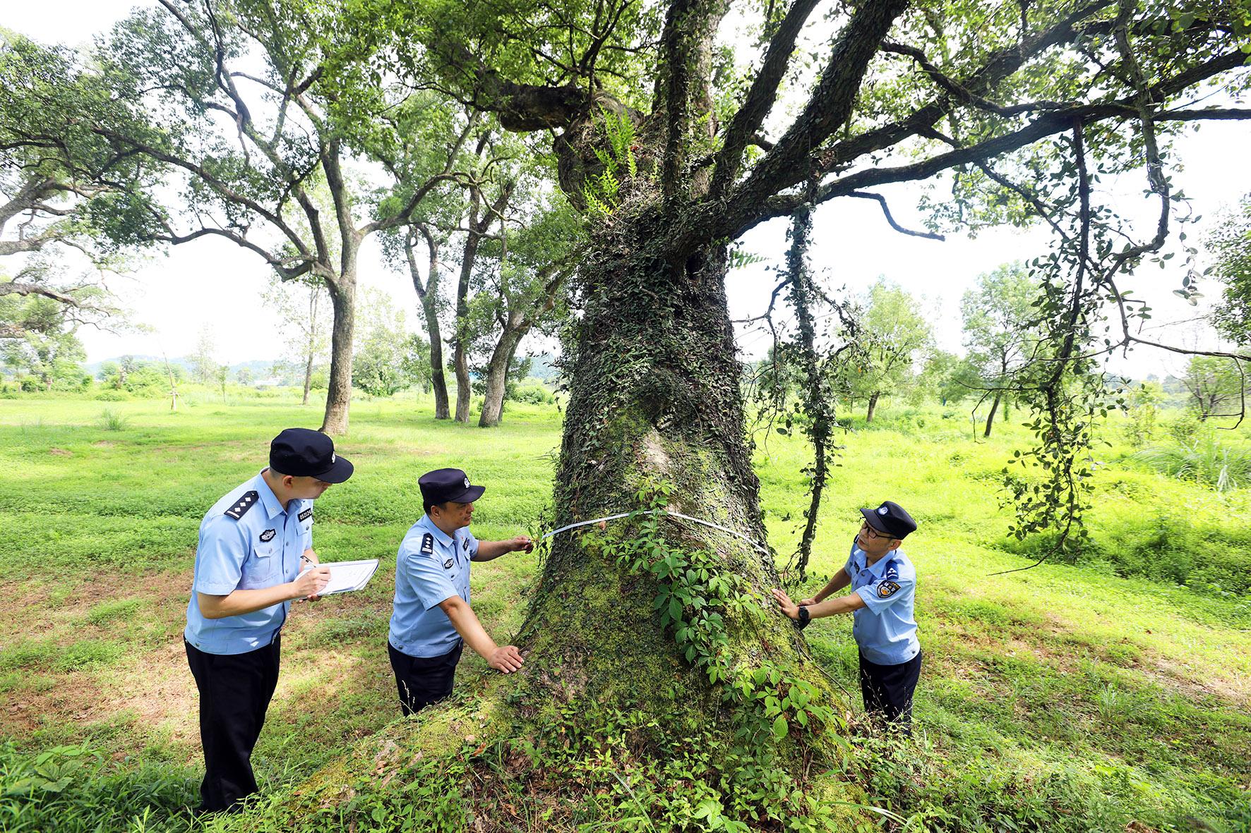 為保護(hù)珍貴的古樹名木資源,9月10日,江西省分宜縣公安局森林警察大隊(duì)組織民輔警開展古樹名木巡查保護(hù)行動。