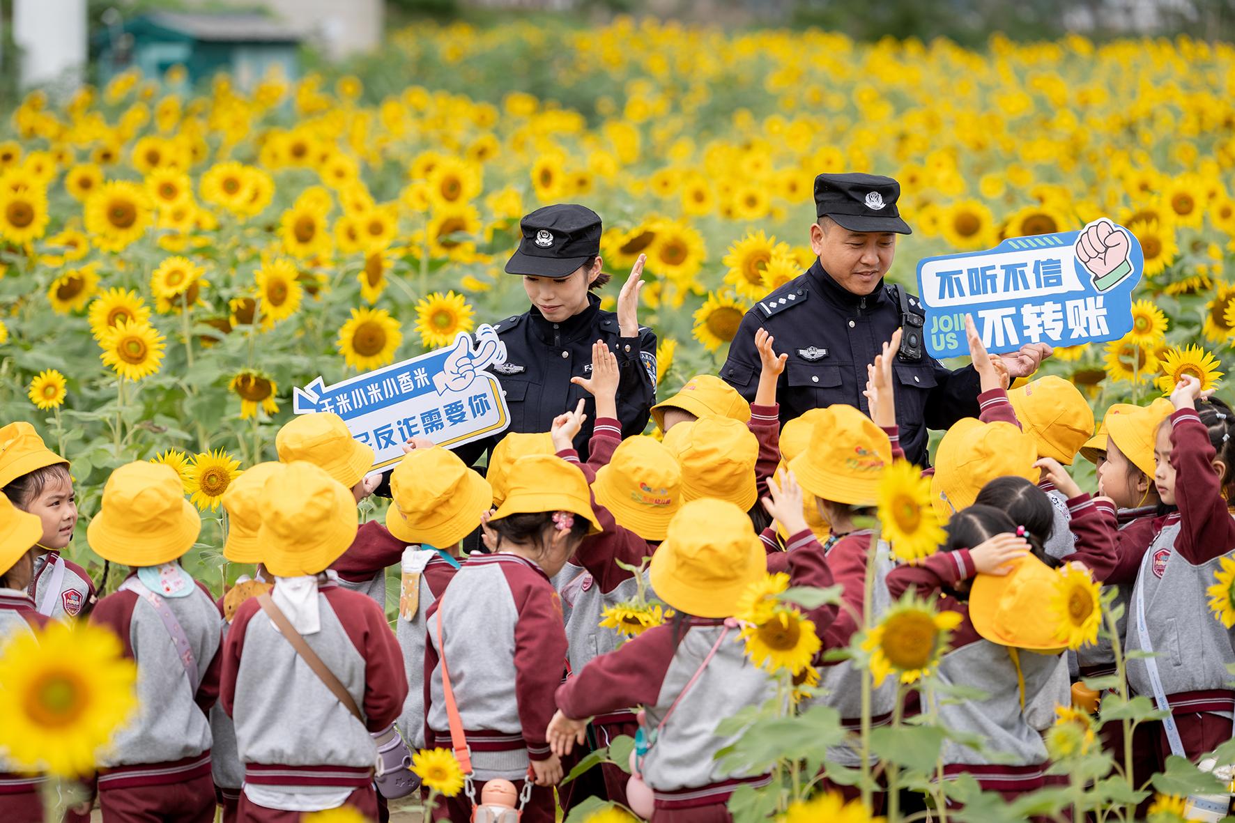 10月17日,四川省綿陽市公安局游仙分局石馬派出所民警在游仙區(qū)紅巖電站涪江畔向小游客們講解防范電信網(wǎng)絡詐騙知識。