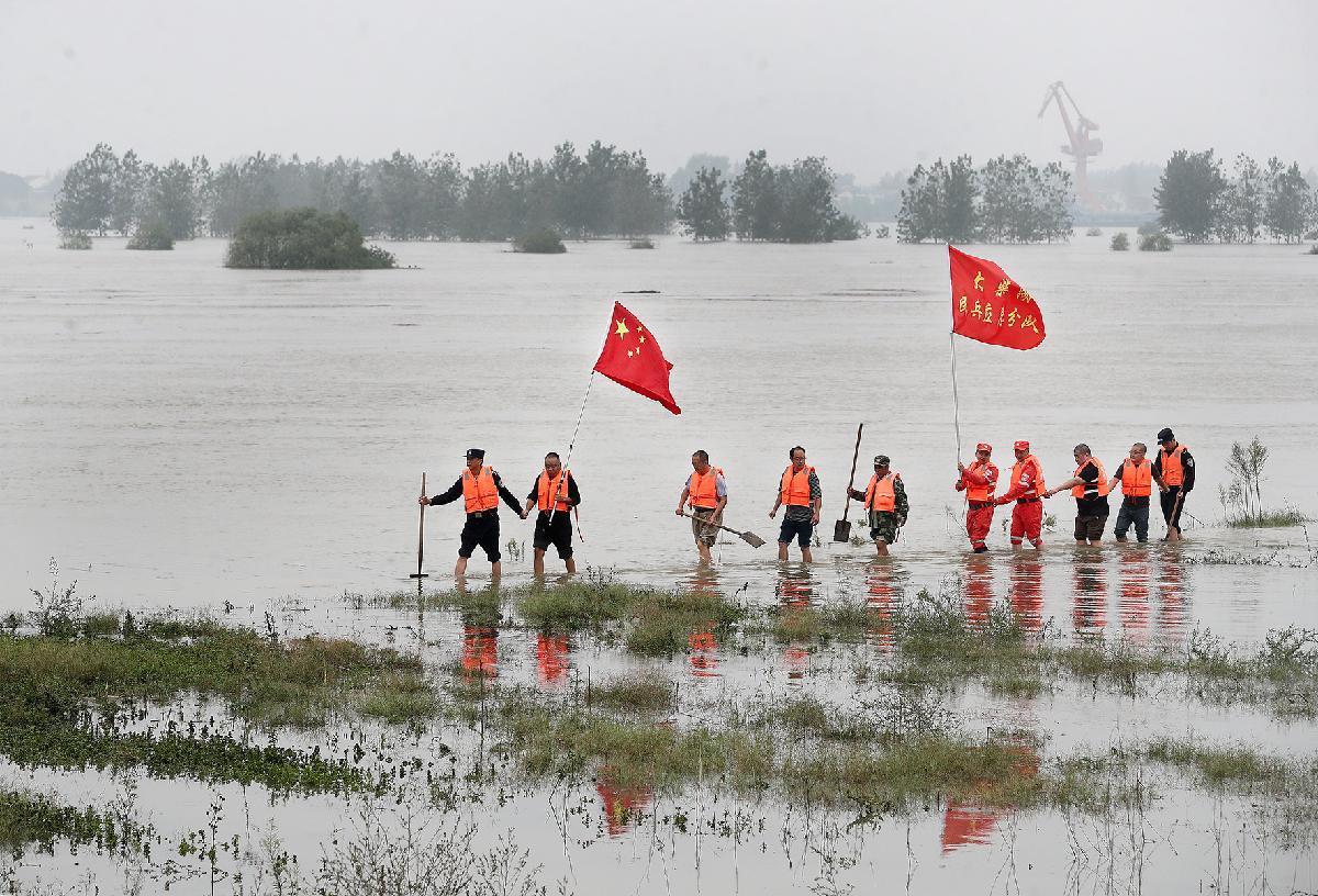 10月1日,湖北省鐘祥市公安局柴湖派出所民警和民兵應急分隊組成巡查隊,在柴湖鎮(zhèn)漢江堤防開展“拉網式”排查。