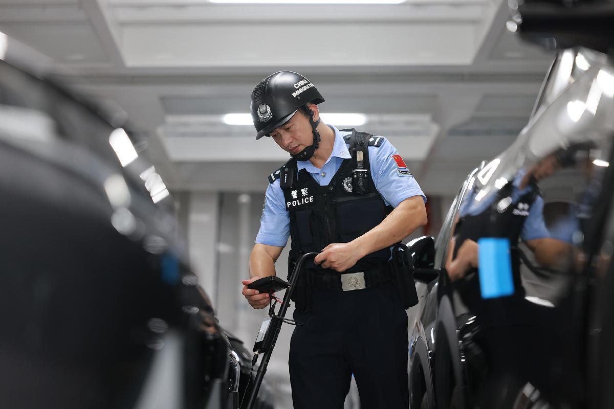 10月1日,安徽省寧國市公安局霞西派出所民輔警堅守崗位,開展道路交通安全隱患排險等工作。