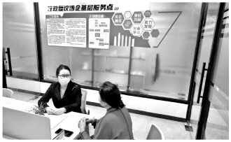 今年4月初,浙江省寧波市鄞州區(qū)司法局在潘火中物科技園掛牌成立全市首個(gè)行政復(fù)議涉企基層服務(wù)點(diǎn)。圖為行政復(fù)議工作人員正在接受企業(yè)咨詢。 本報(bào)通訊員 陳娜 攝