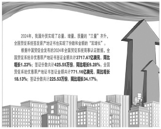2024年,我國外貿(mào)實(shí)現(xiàn)了總量、增量、質(zhì)量的“三量”齊升,全國貿(mào)促系統(tǒng)簽發(fā)原產(chǎn)地證書也實(shí)現(xiàn)了份數(shù)和金額的“雙增長”。