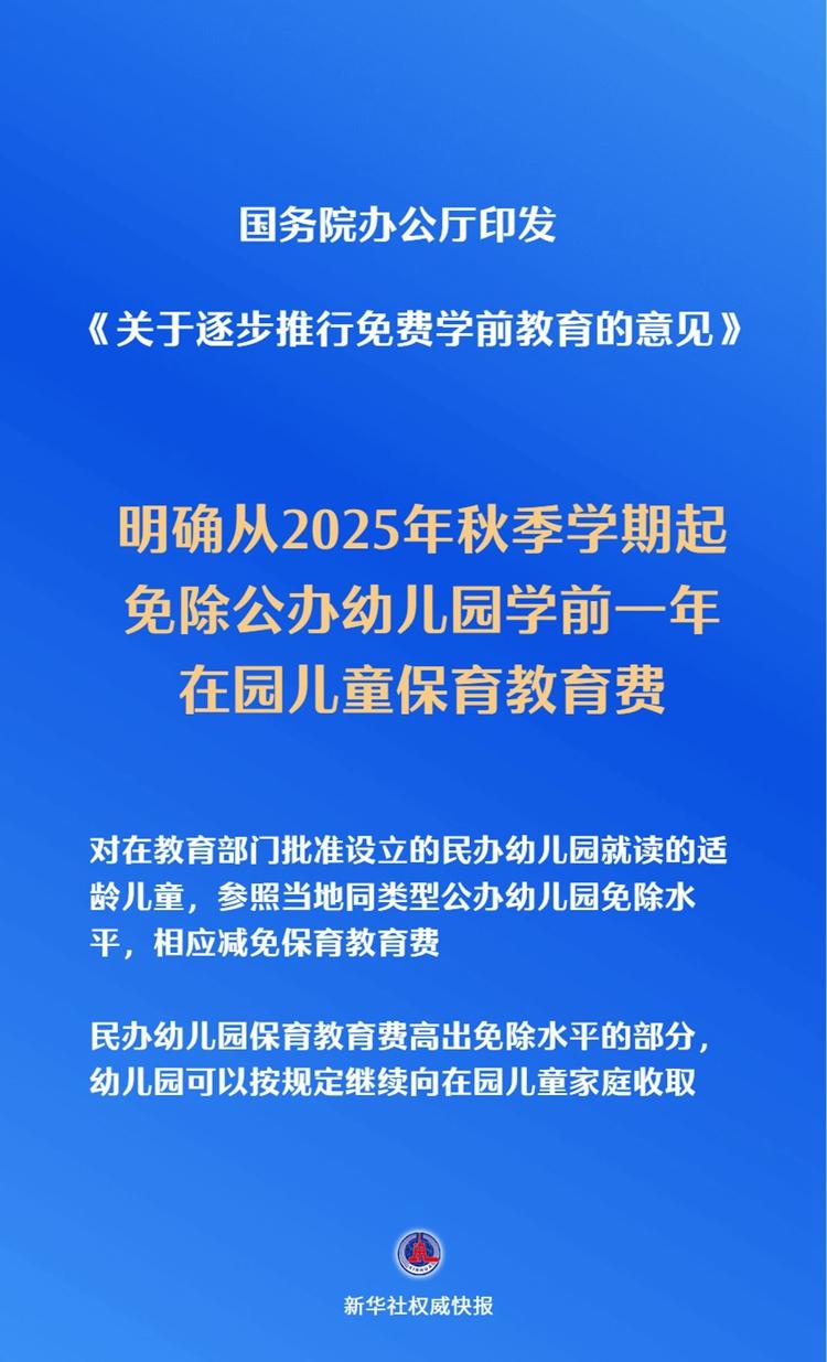 《意見(jiàn)》明確,從2025年秋季學(xué)期起,免除公辦幼兒園學(xué)前一年在園兒童保育教育費(fèi)。免保育教育費(fèi)標(biāo)準(zhǔn)按照縣級(jí)以上地方人民政府及其教育、價(jià)格主管部門(mén)批準(zhǔn)的公辦幼兒園保育教育費(fèi)收費(fèi)標(biāo)準(zhǔn)(不含伙食費(fèi)、住宿費(fèi)、雜費(fèi)等)執(zhí)行。對(duì)在教育部門(mén)批準(zhǔn)設(shè)立的民辦幼兒園就讀的適齡兒童,參照當(dāng)?shù)赝?lèi)型公辦幼兒園免除水平,相應(yīng)減免保育教育費(fèi)。民辦幼兒園保育教育費(fèi)高出免除水平的部分,幼兒園可以按規(guī)定繼續(xù)向在園兒童家庭收取。對(duì)因免保育教育費(fèi)導(dǎo)致幼兒園收入減少的部分,由財(cái)政部門(mén)綜合考慮免保育教育費(fèi)在園兒童人數(shù)、所在地保育教育費(fèi)生均實(shí)際收費(fèi)水平等情況補(bǔ)助幼兒園。