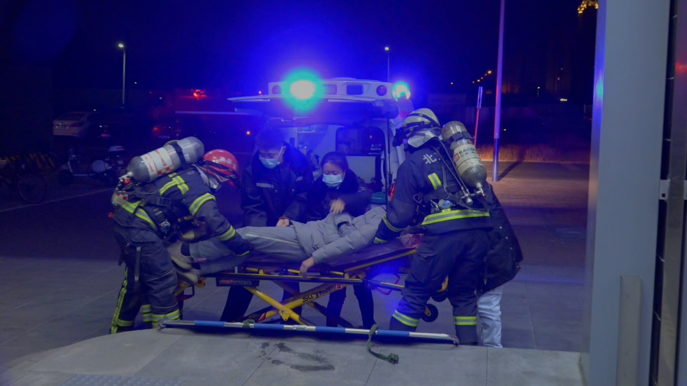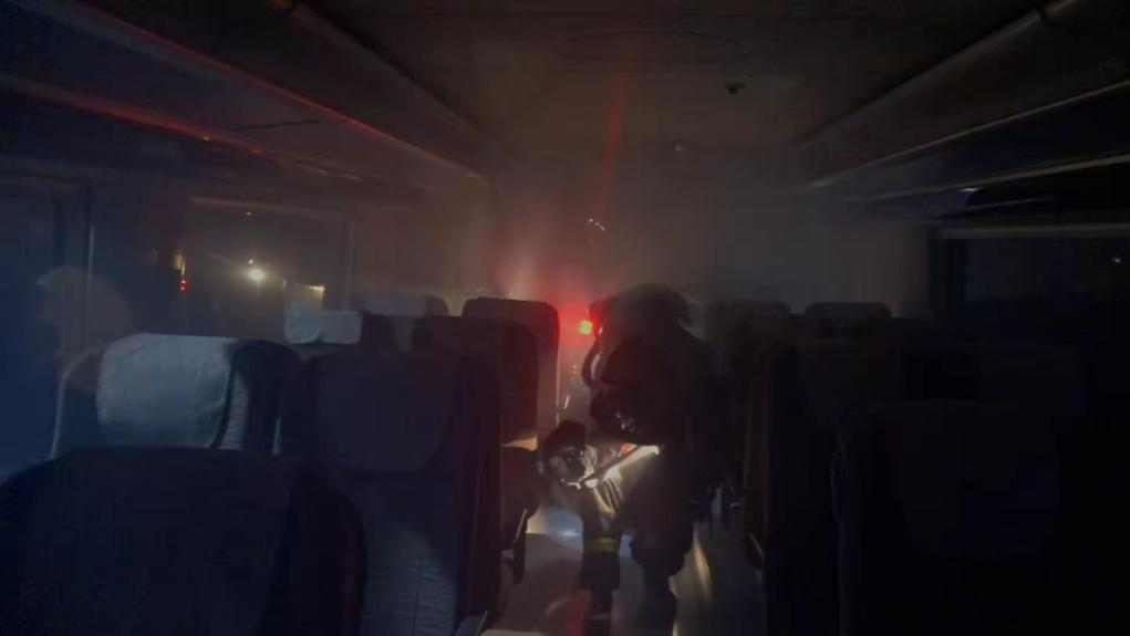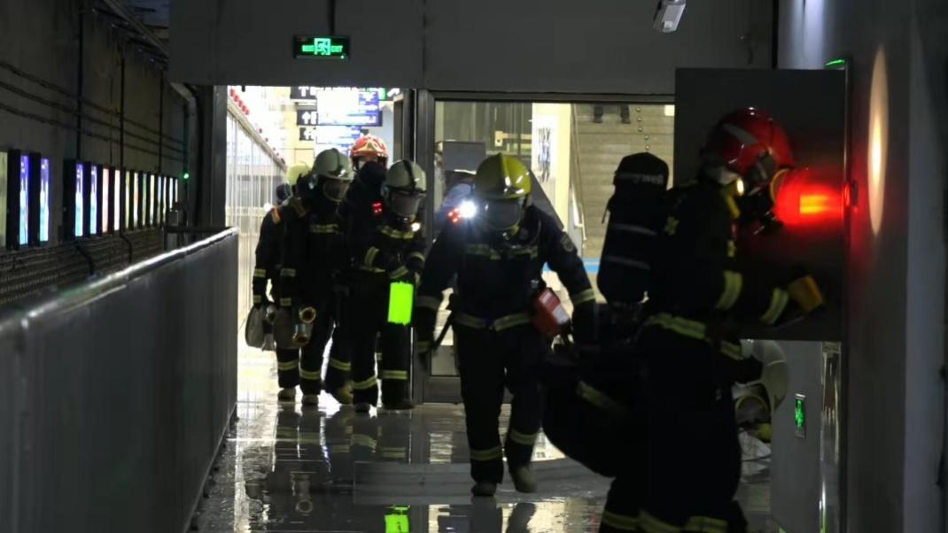 1月21日1時(shí),演練正式開始。一列由大興新城地鐵站開往草橋站的地鐵因動(dòng)力電機(jī)故障導(dǎo)致電氣線路起火燃燒,高溫?zé)煔庋杆傧蜍噹麅?nèi)蔓延,造成大量乘客被困。發(fā)生火災(zāi)后,大興新城地鐵站值班人員確認(rèn)事故后,立即啟動(dòng)應(yīng)急處置預(yù)案,停運(yùn)就近線路列車運(yùn)行,并撥打119報(bào)警。地鐵工作人員利用應(yīng)急廣播向乘客播報(bào)情況穩(wěn)定乘客情緒,車站工作人員啟動(dòng)應(yīng)急處置,地鐵微型消防站趕赴站臺(tái),疏散站臺(tái)乘客,啟動(dòng)固定消防設(shè)施。119指揮中心接警后立即啟動(dòng)《北京市地鐵火災(zāi)事故滅火救援預(yù)案》,調(diào)集專業(yè)力量及社會(huì)聯(lián)動(dòng)單位到場(chǎng)協(xié)同處置。消防隊(duì)站到場(chǎng)后成立偵查組、搜救組、滅火組、照明組、排煙組、保障組等多個(gè)小組,采取“接力疏散、陣地堵截、控?zé)熃禍亍钡燃紤?zhàn)術(shù)措施;搜救組在水槍掩護(hù)下進(jìn)入內(nèi)部偵察火情并優(yōu)先搜救被困人員,啟動(dòng)接力疏散戰(zhàn)術(shù);滅火組采取“排煙散熱、開辟通道、雙向搜救、分段作業(yè)”等技戰(zhàn)術(shù)措施,利用滅火機(jī)器人、干式泡沫對(duì)起火地鐵車輛進(jìn)行滅火處置;轄區(qū)應(yīng)急、公安、交通、環(huán)衛(wèi)、氣象、醫(yī)療等聯(lián)動(dòng)力量參與行動(dòng),提供外圍警戒、交通疏導(dǎo)、醫(yī)療保障等工作。1時(shí)35分,明火被撲滅,所有人員全部安全救出,人員得到妥善救助,綜合演練圓滿結(jié)束。
