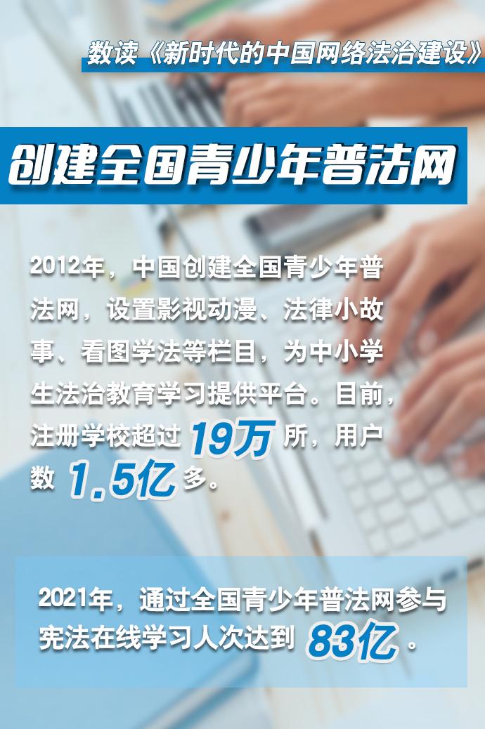 互聯(lián)網(wǎng)是人類文明發(fā)展的重要成果,法治是互聯(lián)網(wǎng)治理的基本方式。長期以來,我國堅持依法治網(wǎng),持續(xù)推進(jìn)網(wǎng)絡(luò)空間法治化,推動互聯(lián)網(wǎng)在法治軌道上健康運行。3月16日,國務(wù)院新聞辦公室發(fā)布《新時代的中國網(wǎng)絡(luò)法治建設(shè)》白皮書,白皮書公布了很多重要數(shù)據(jù),讓我們通過這些數(shù)據(jù),感受新時代以來我國在網(wǎng)絡(luò)立法、執(zhí)法、司法、普法、法治教育等領(lǐng)域取得的歷史性成就。