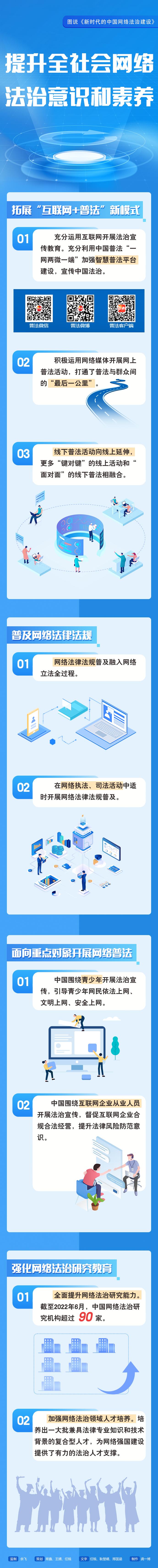 互聯(lián)網(wǎng)是人類文明發(fā)展的重要成果,法治是互聯(lián)網(wǎng)治理的基本方式。長(zhǎng)期以來,我國堅(jiān)持依法治網(wǎng),持續(xù)推進(jìn)網(wǎng)絡(luò)空間法治化,推動(dòng)互聯(lián)網(wǎng)在法治軌道上健康運(yùn)行。3月16日,國務(wù)院新聞辦公室發(fā)布《新時(shí)代的中國網(wǎng)絡(luò)法治建設(shè)》白皮書,讓我們一起來看如何提升全社會(huì)網(wǎng)絡(luò)法治意識(shí)和素養(yǎng)。